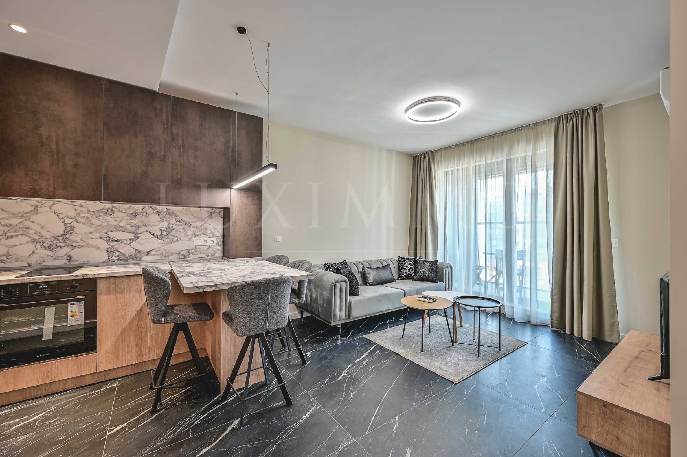We present a brand new, luxuriously furnished two-room apartment in the "Via Bulgaria" building, on "Bulgaria" Blvd. The apartment is a wonderful offer for renting a cozy home in a peaceful environment with good neighbors, quick access to amenities from the center of the capital and to the Vitosha mountain.