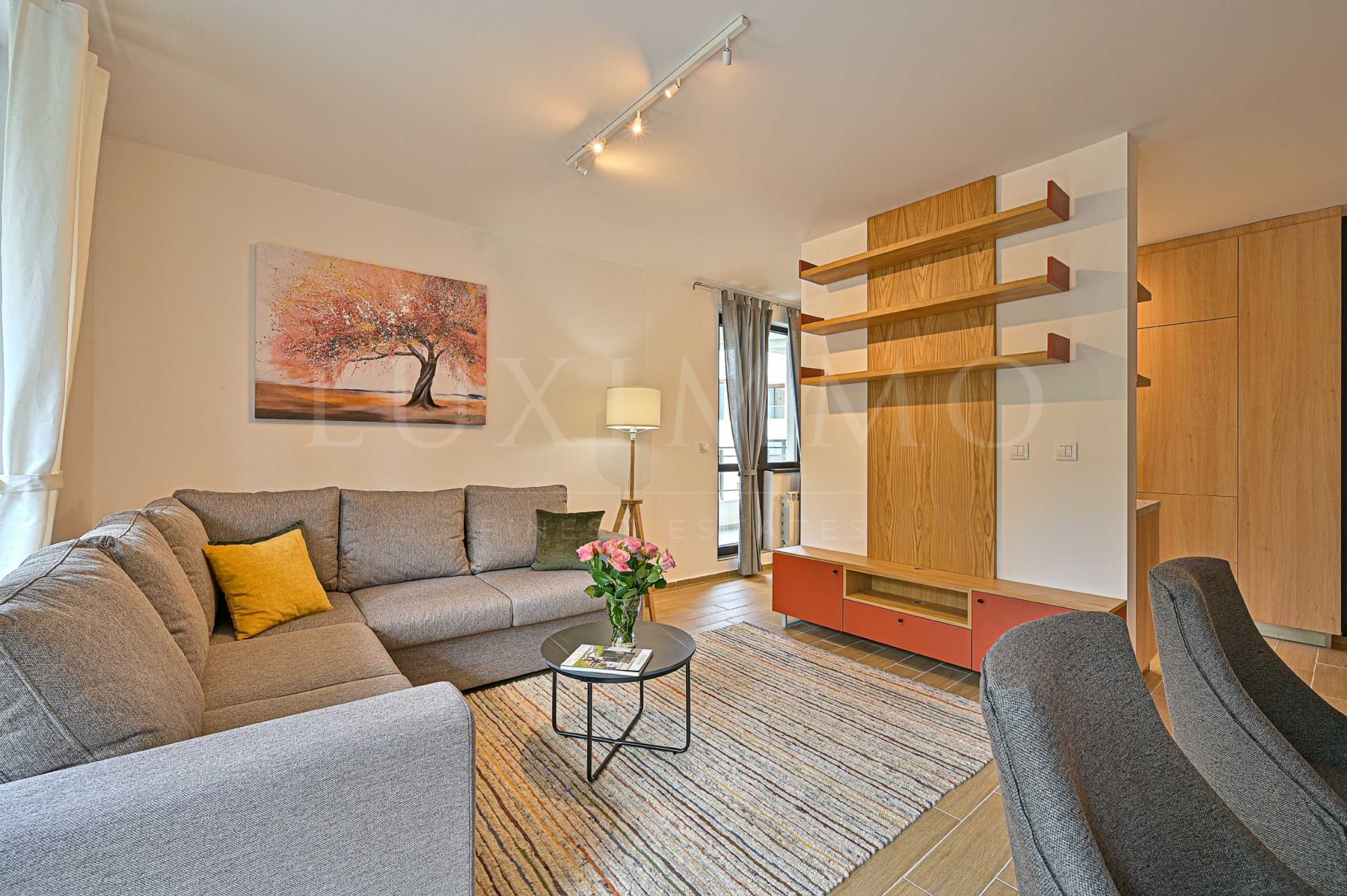 We present to you a fully furnished two-room apartment in Boyana district, Girdova Glava area. The property is located in a small boutique building, located in the midst of greenery and silence, with a well-maintained sunny courtyard. The location combines tranquility and quick access to Tsar Boris III Blvd. The apartment is spacious, bright and cozy, furnished with an individual design project that combines style and attention to every detail, providing you with a higher quality of life.