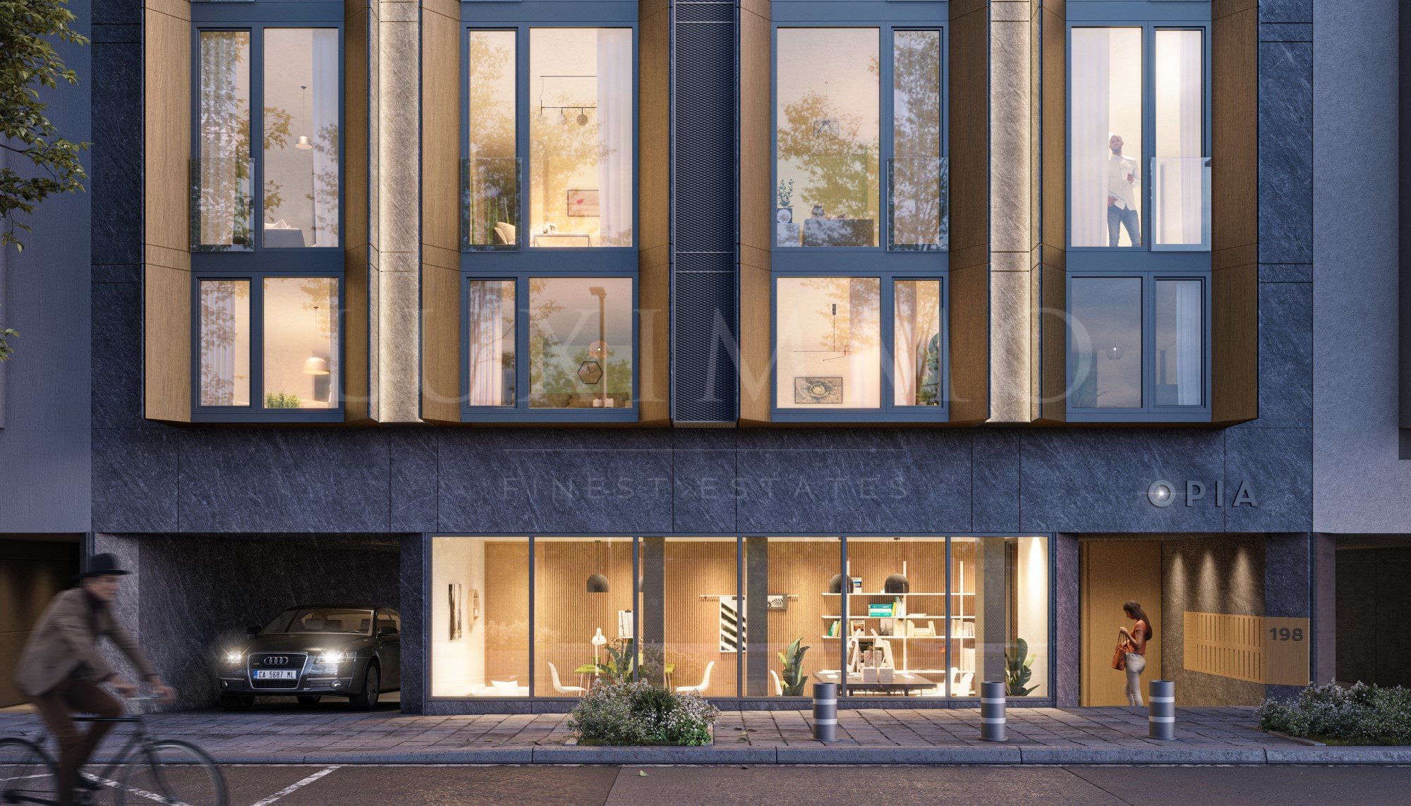 The building is distinguished by an impressive design, the facade stylishly combines the textures of wood and glass, and the details of the exterior add a unique touch to the overall vision of the project.