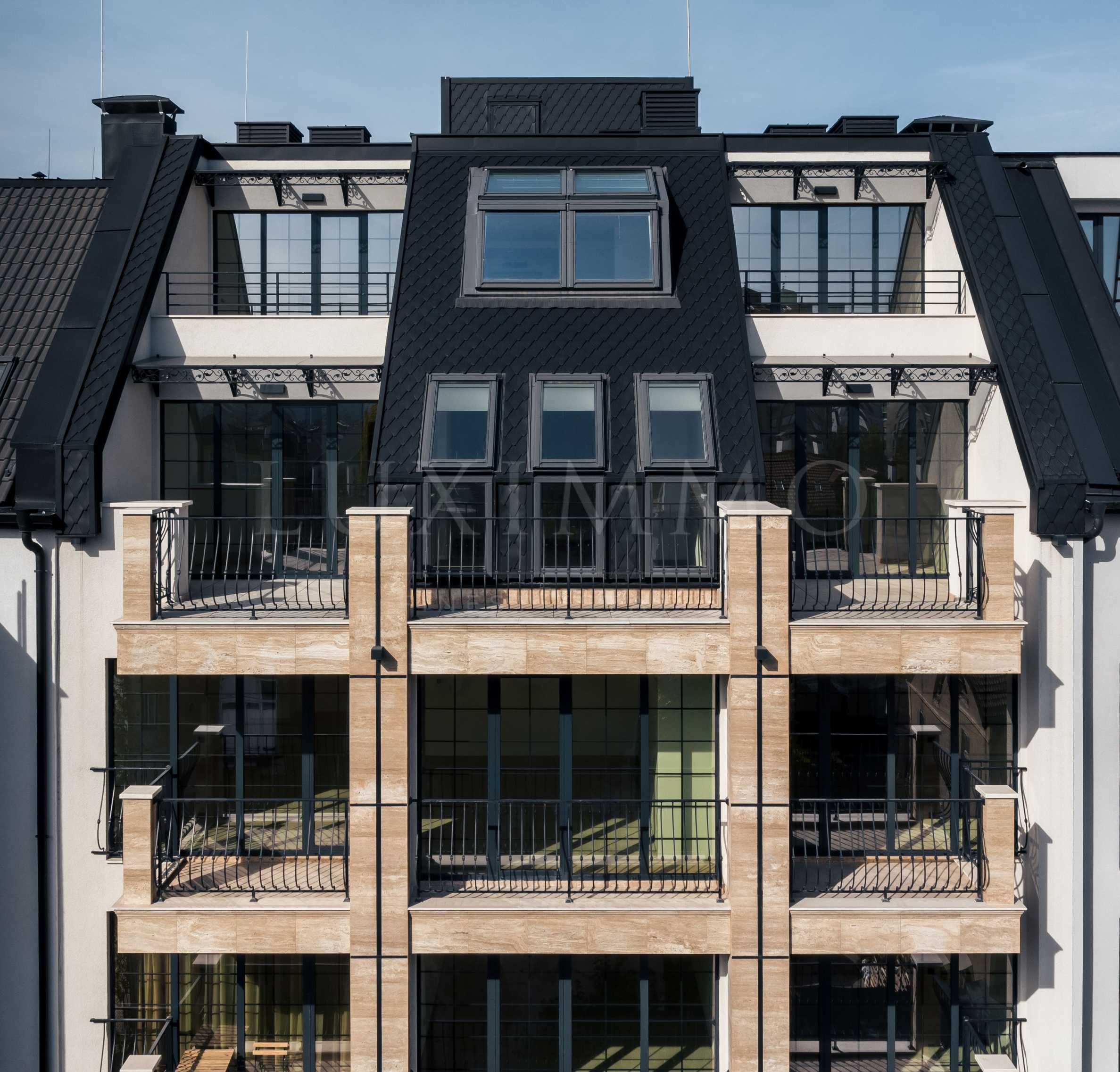 Designed with classical architecture and a modern look, the building is located between two bays, distributed over five floors, with two attics and one underground floor, with a total of thirteen apartments. Storage rooms are provided in the underground floor. Parking is provided with 5 parking spaces and 2 garage cells on the underground level and 3 garage cells and 3 above-ground parking spaces on the first floor. Vertical communication consists of an elevator and a staircase serving all levels. The main facades of the building are made of high-quality materials with differently textured areas of travertine and wrought iron railings with a natural patina.