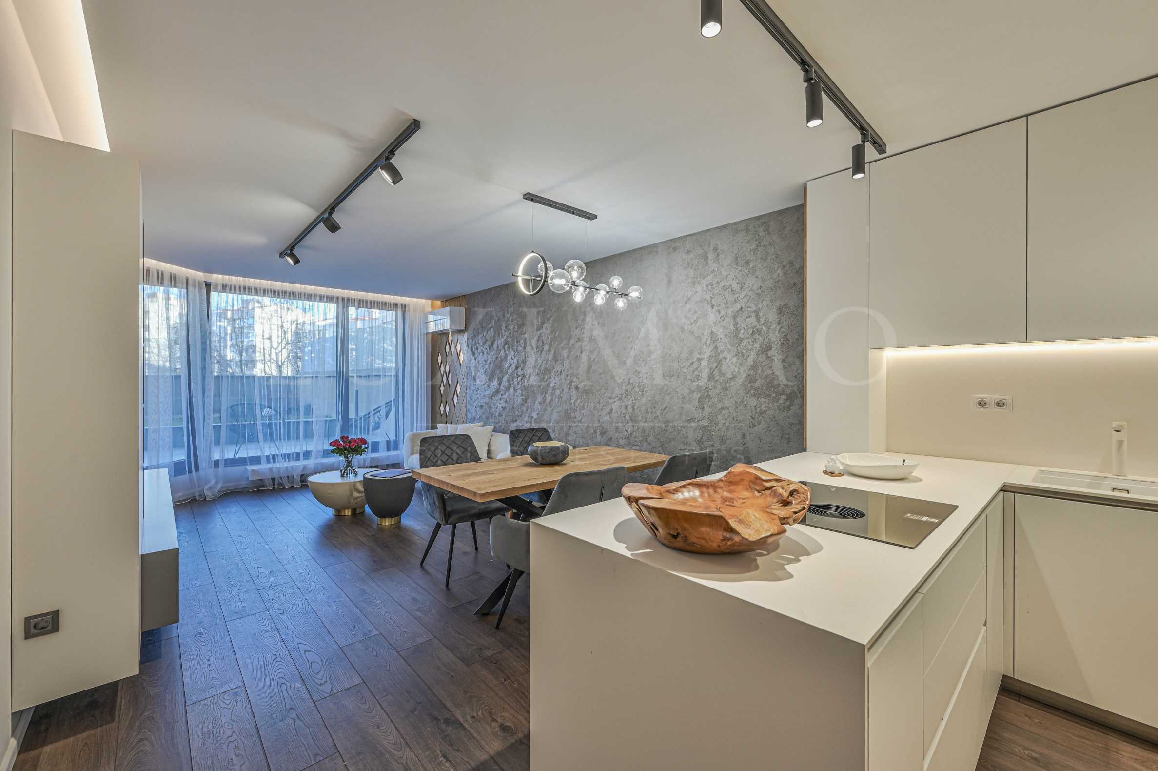 Luxurious, fully furnished apartment next to the "G.M. Dimitrov" metro station. We offer for rent a sophisticated one-bedroom apartment in the prestigious "Harmony" building, located in close proximity to the G.M. Dimitrov metro station.