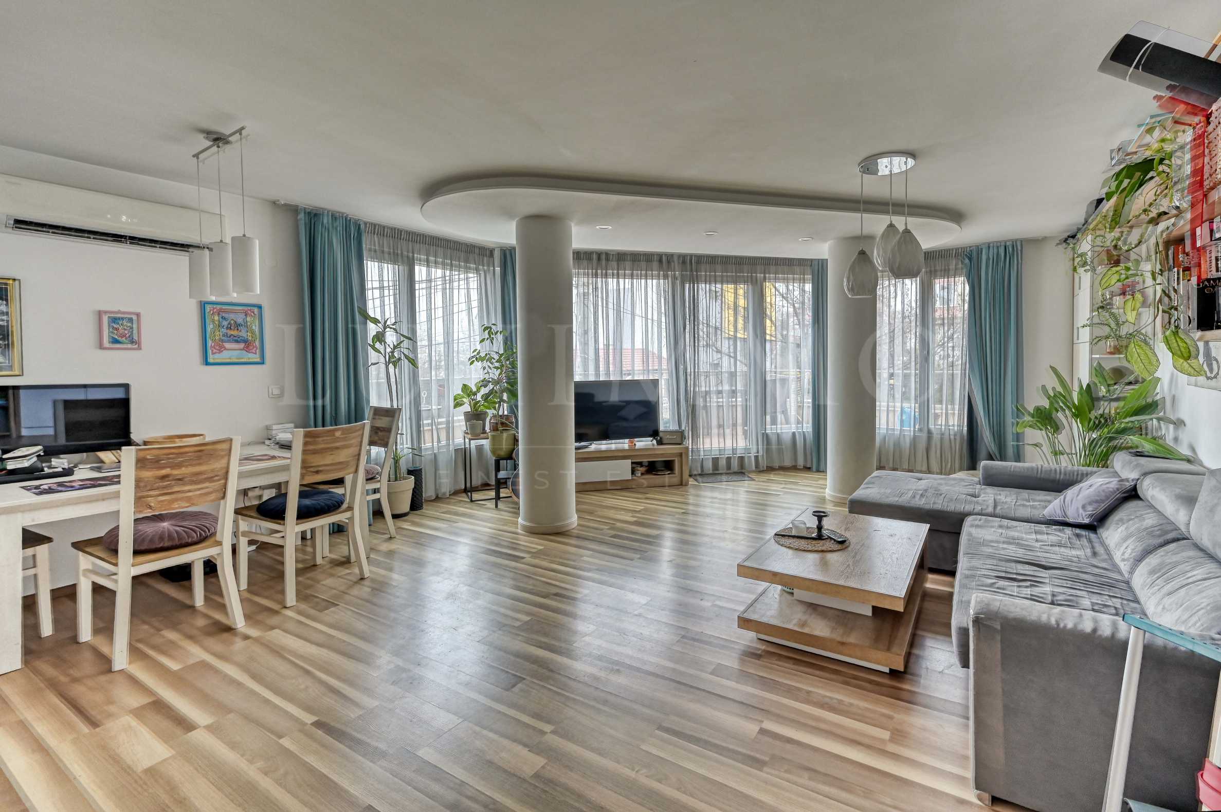 We present to you an exceptional, spacious one-bedroom apartment with bright rooms and modern design, in the Reduta district. The apartment is located at 8 Velcho Atanasov Street. It has a basement and a garage on the ground floor for a separate price of 50,000 euros.