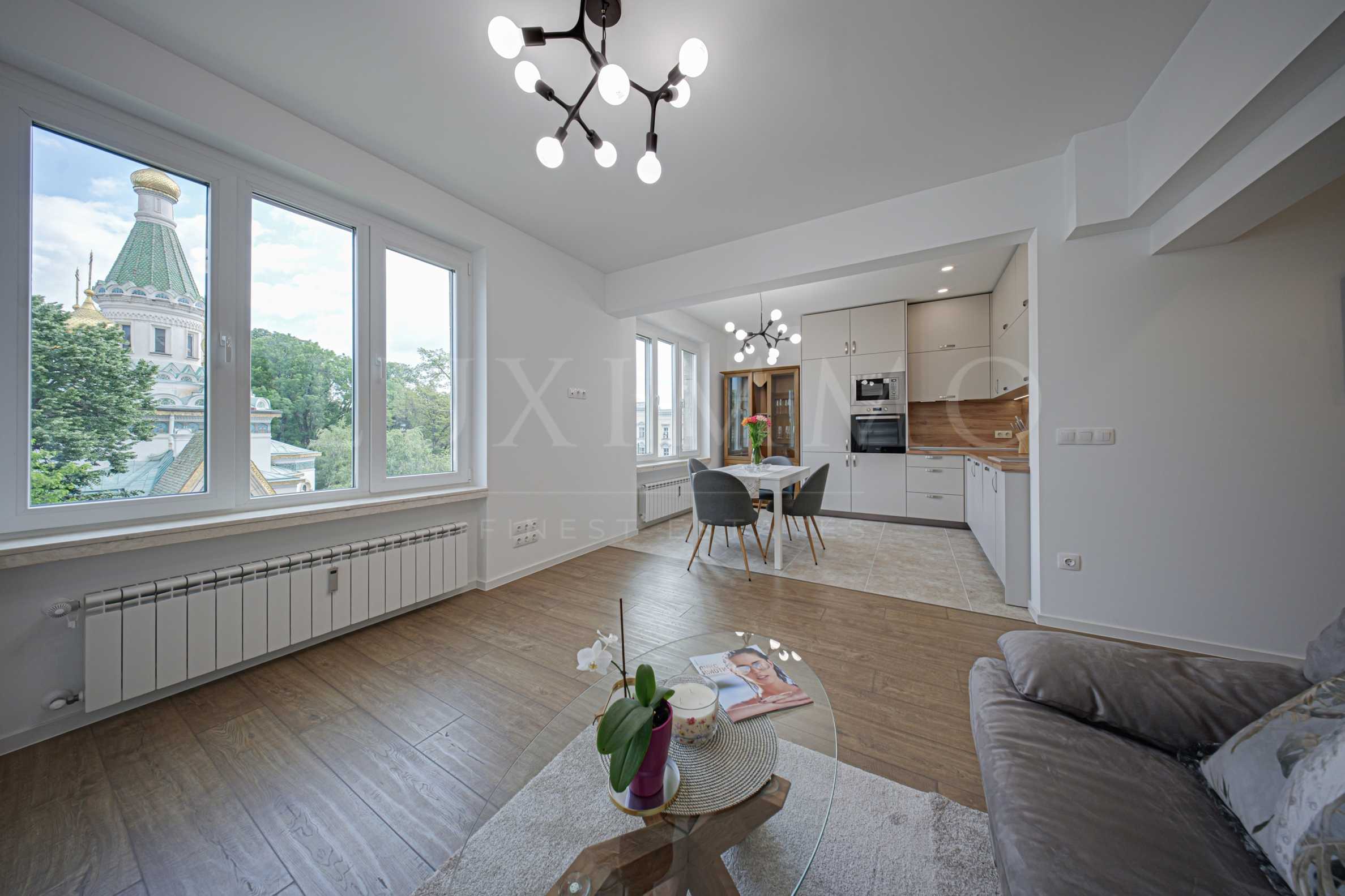Luxurious, completely renovated apartment with a panoramic view of the Russian Church. The property is located in one of the most beautiful parts of central Sofia. Within meters are emblematic buildings and places for the capital such as the National Art Gallery, Bulgaria Hall, Ivan Vazov National Theater, Crystal City Garden, etc. Access to important points is quick and convenient via Tsar Osvoboditel Blvd., Aksakov St., G. S. Rakovski St.