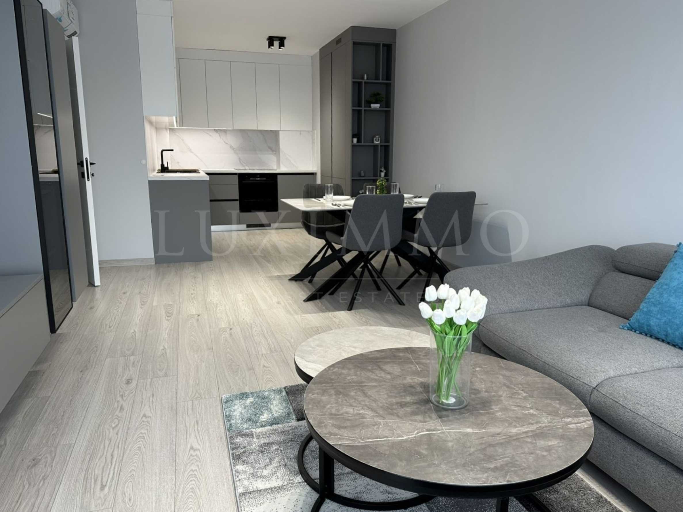 We present a luxurious one-bedroom apartment for rent in one of the most desirable gated complexes at the foot of Vitosha Mountain, right next to Ring Mall and IKEA. The complex offers controlled access, 24-hour security, well-maintained common areas and green areas, guaranteeing peace, security and a high standard of living.
