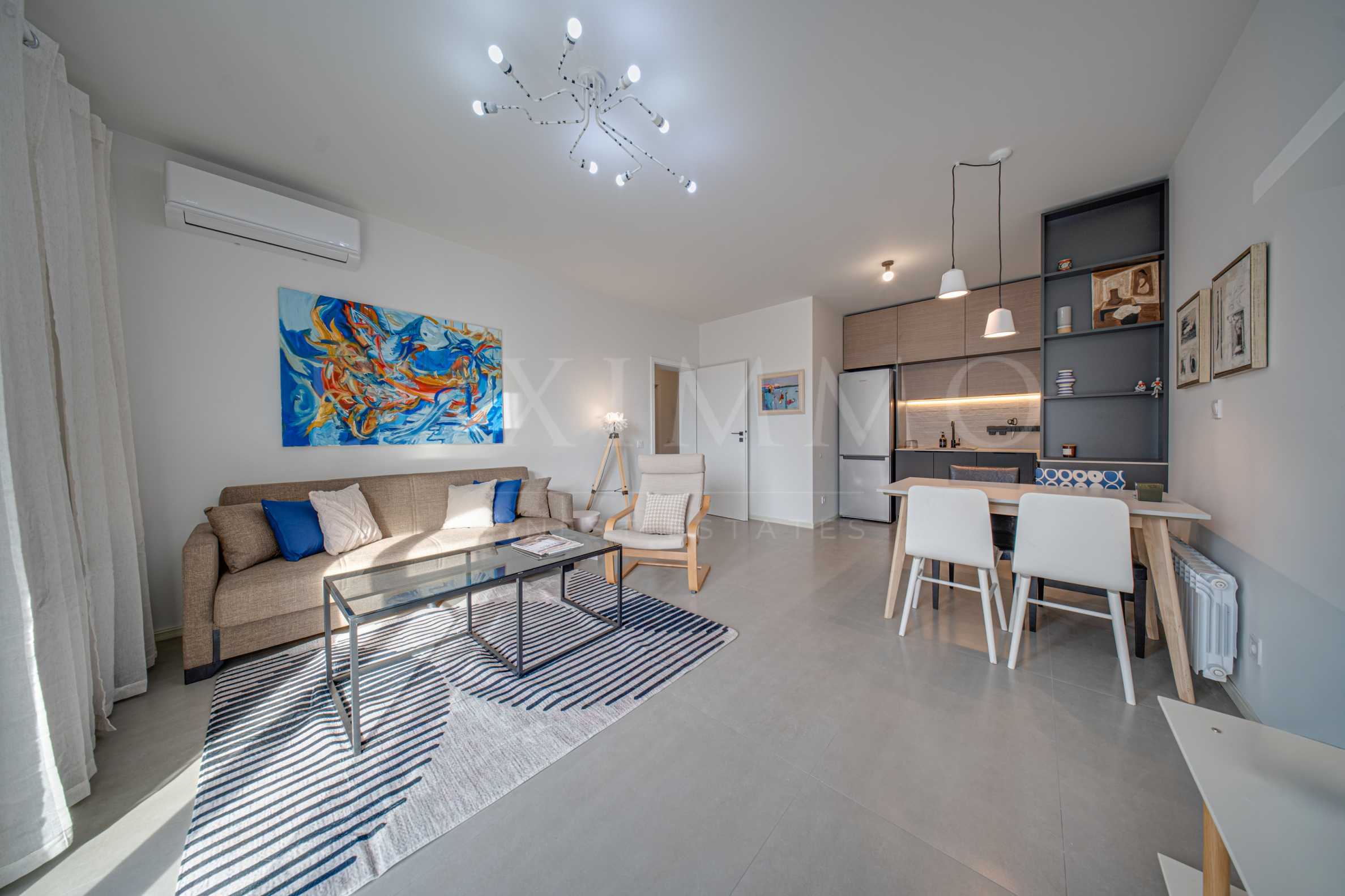 We present to your attention a brand new, cozy one-bedroom apartment for rent, with a pleasant view of the inner courtyard, providing peace and quiet. The apartment is extremely bright, with southern exposure and a view of Vitosha, functionally distributed and awaits its first tenants. It is furnished with brand new, stylish furniture and high-class electrical appliances, and has everything you need for comfortable and fulfilling living.