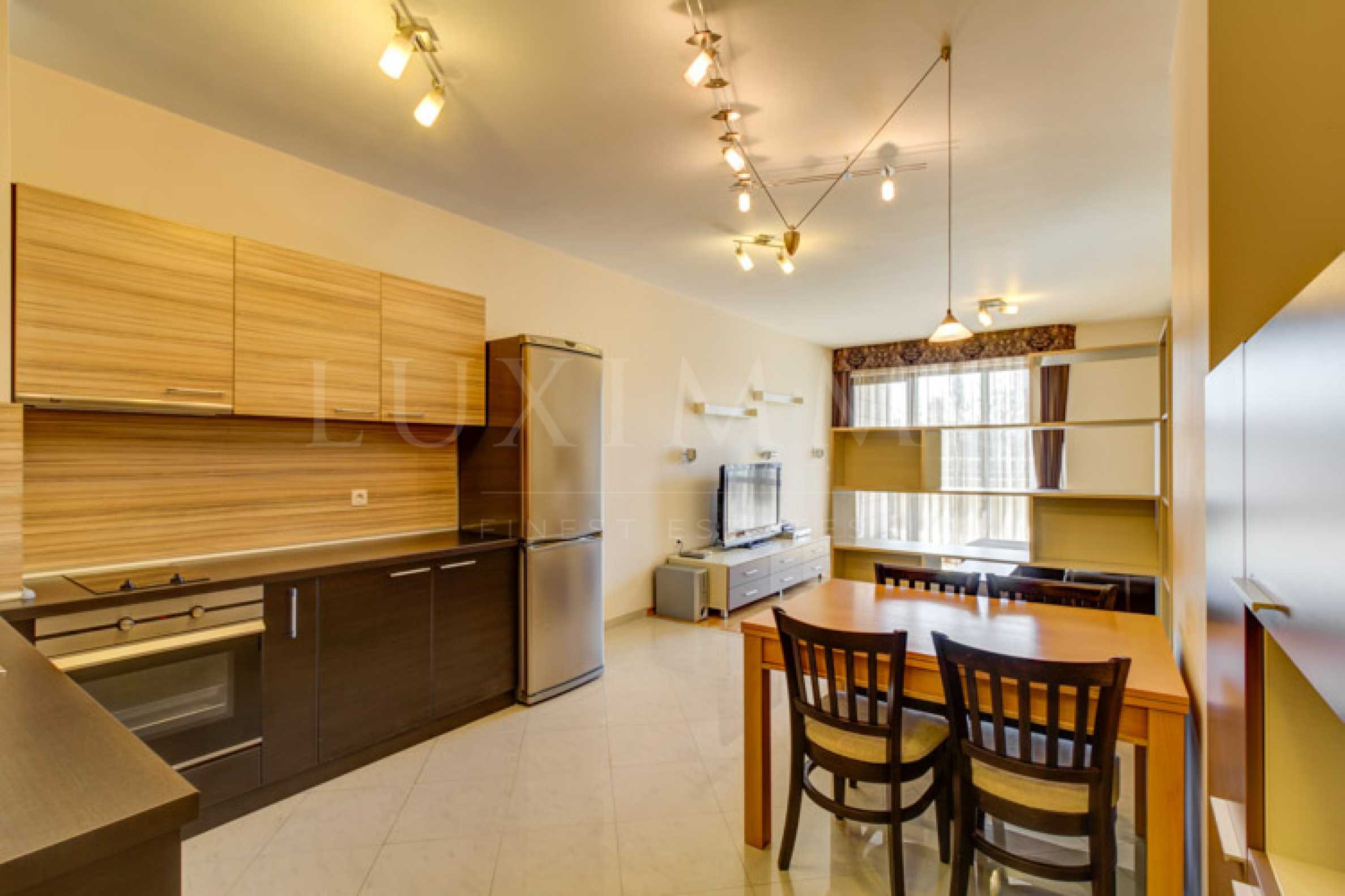 We offer you this 2-bedroom apartment with a total area of 125 m2 which is situated in a gated development. It was constructed in 2008 and has luxury common parts. The property is supplied with central heating. Painted walls, parquet flooring, tiled flooring and upvc window frames are available in the property. The property is connected to electricity, communal water supply, communal sewage system and mains drainage. Some of the other available facilities that you will certainly consider important include: a balcony, a bathroom with toilet, a parking space, a toilet, a lift, a porter, a cable tv, internet, a secure entry system, a telephone line and a wi-fi. From the inside you will be able to enjoy wonderful forest views.