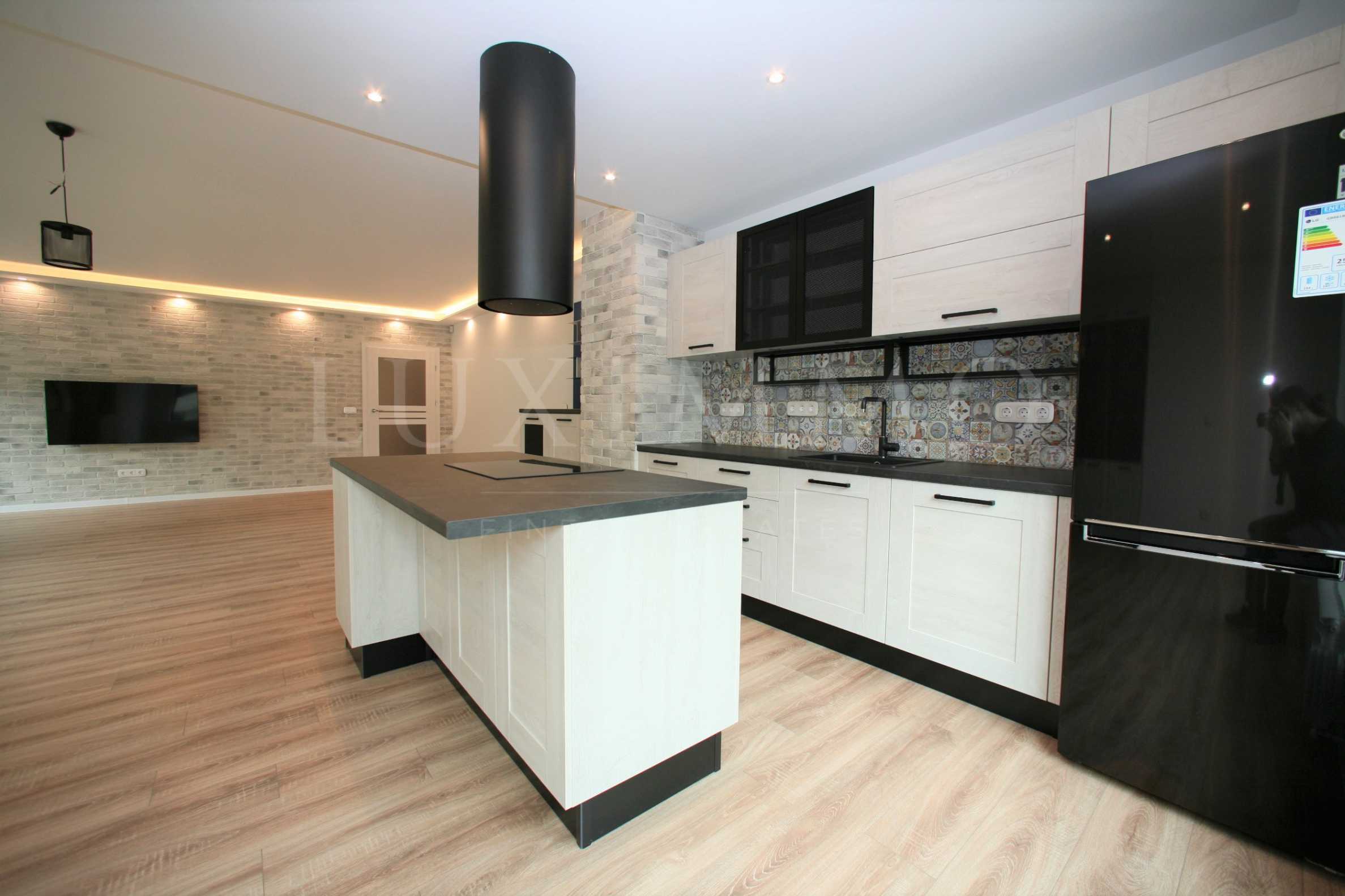 At the moment there is the following complex equipment: air conditioners in each room, washing machine with dryer, boiler, TV. The kitchen has high class appliances: dishwasher "Bosch", oven, hob and extractor "Electrolux", refrigerator "LG".