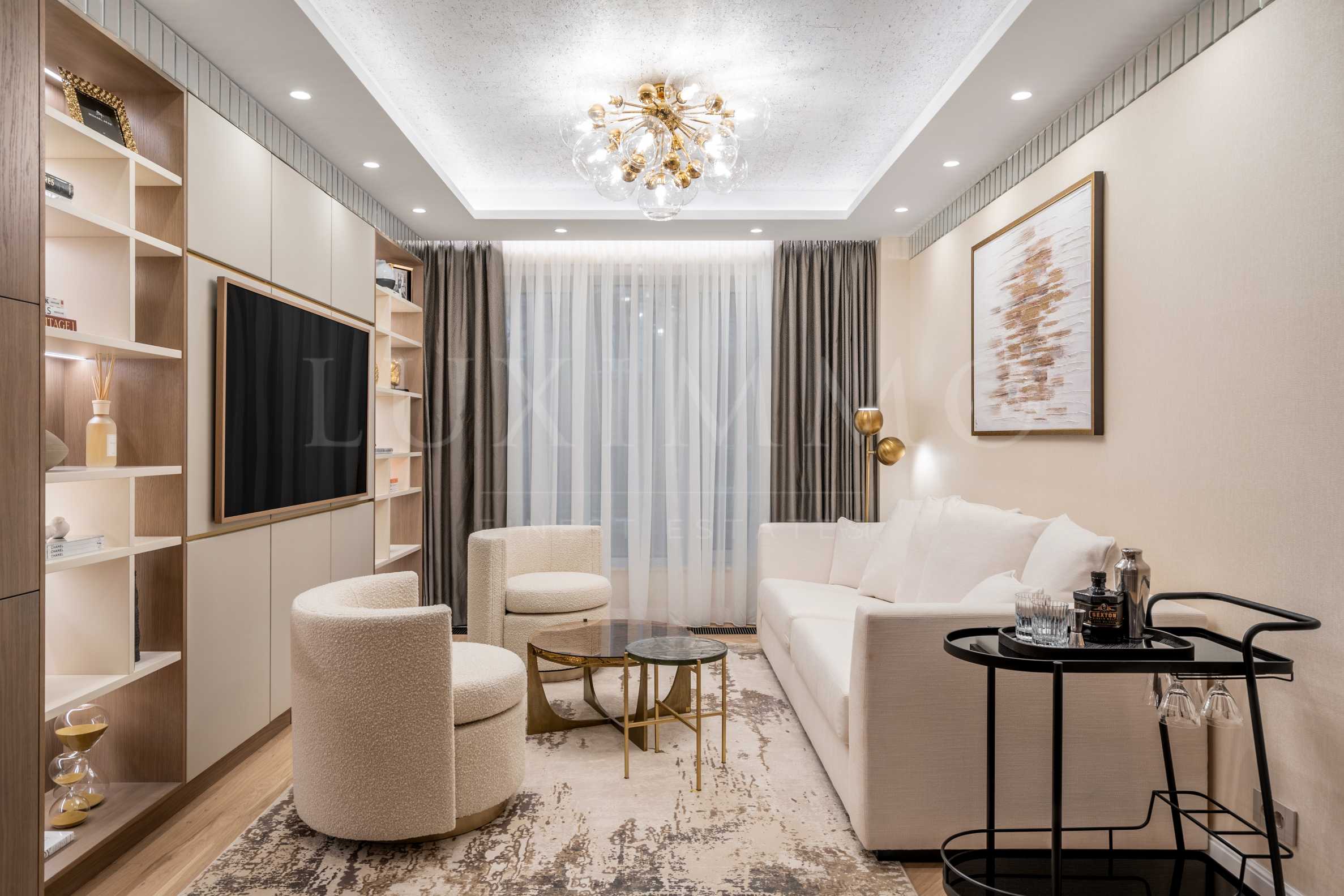 The apartment is designed by a leading Bulgarian interior designer and combines a remarkable interior and high quality workmanship, ensuring uncompromising quality of life. Located on the 2nd floor, the apartment offers 115 m2 total area, with comfortable layout, spacious rooms and high ceilings 2.70 m.
