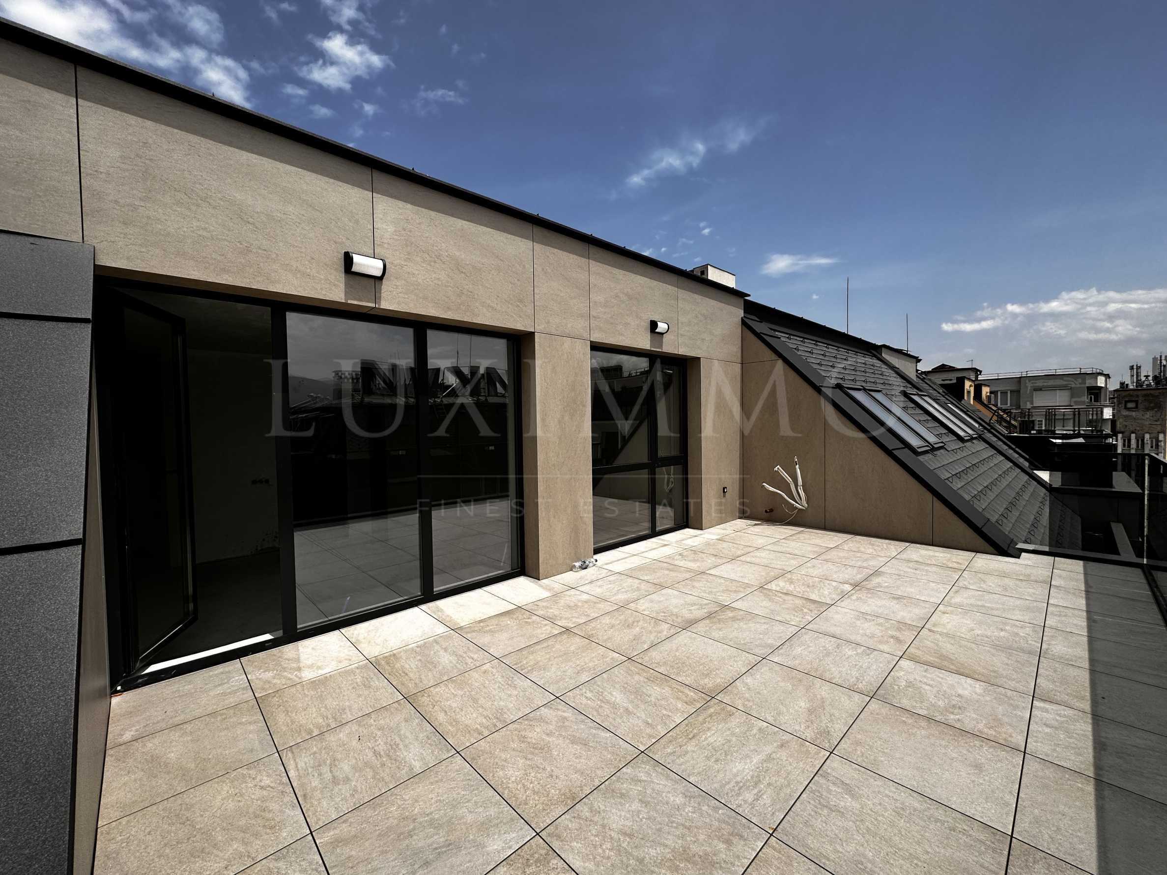 The apartment is located on the 7th floor and offers an area of 201.08 m2., functionally divided into an entrance hall, a living room with a kitchenette, a bedroom with its own bathroom and toilet, a storage room and a closet, a second bedroom, a bathroom and a toilet and a terrace with an area of 33.55 m2. .m. It is offered qualitatively finished according to the Bulgarian State Standard.