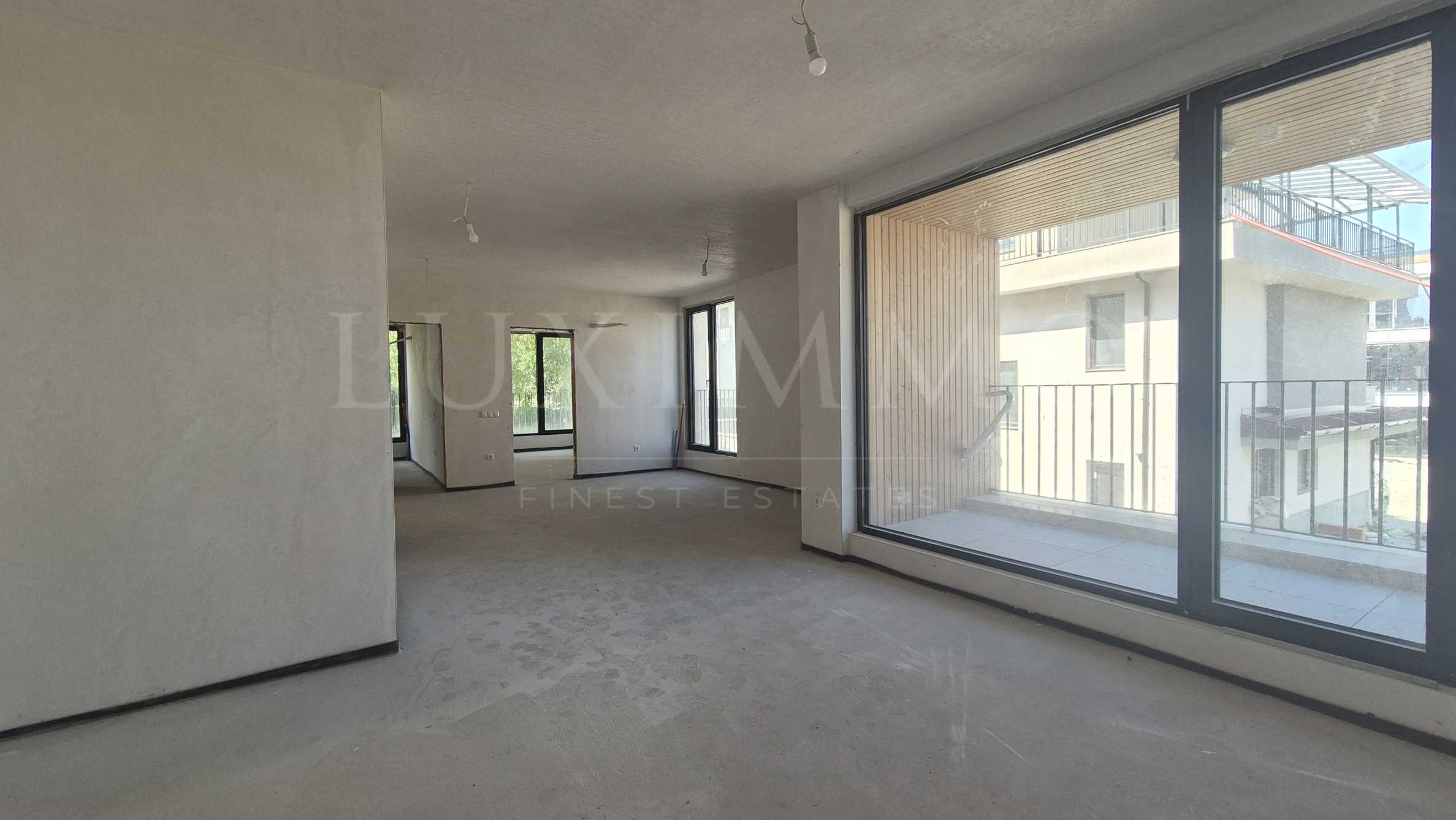 The building is boutique, of gated type and offers a richly landscaped yard and a large number of trees to ensure a cool microclimate in the summer. The execution is of high quality, provided mainly with natural materials - a facade with natural stone cladding and partial cladding with natural wood - Siberian larch. The apartments have high ceilings, high-class aluminum joinery and French glazing. The approach to the apartments is through a spacious lobby, and the vertical communication is carried out by means of an elevator and a representative staircase with natural lighting and ventilation.