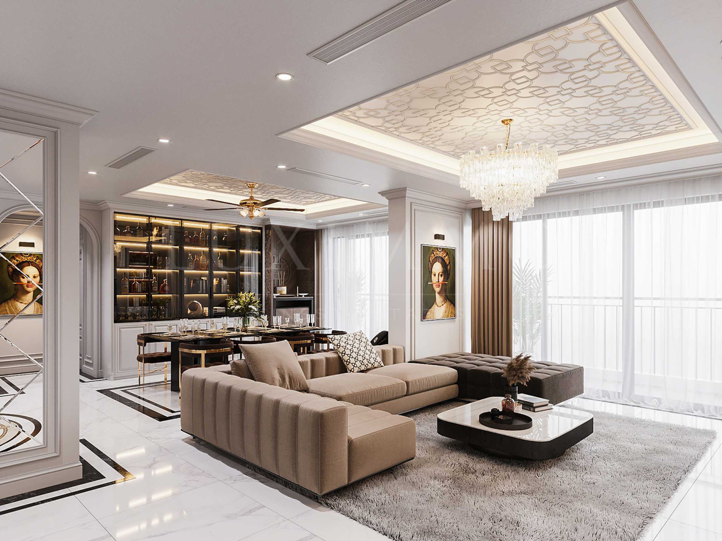 The apartment has a built-up area of 99.69 m2. and a net area of 75.81 m2., located on the 5th floor, facing southeast, which provides light and heat throughout the day.