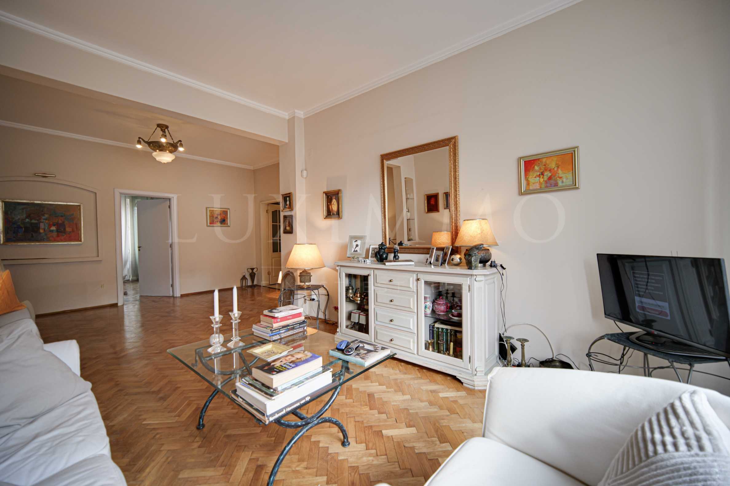 We present an aristocratic three-room apartment for sale in the ideal center of Sofia. It is located a few steps from the metro station, near the NDK, Vitosha Blvd., shops, restaurants, schools and kindergartens, hospitals, theaters and other amenities.