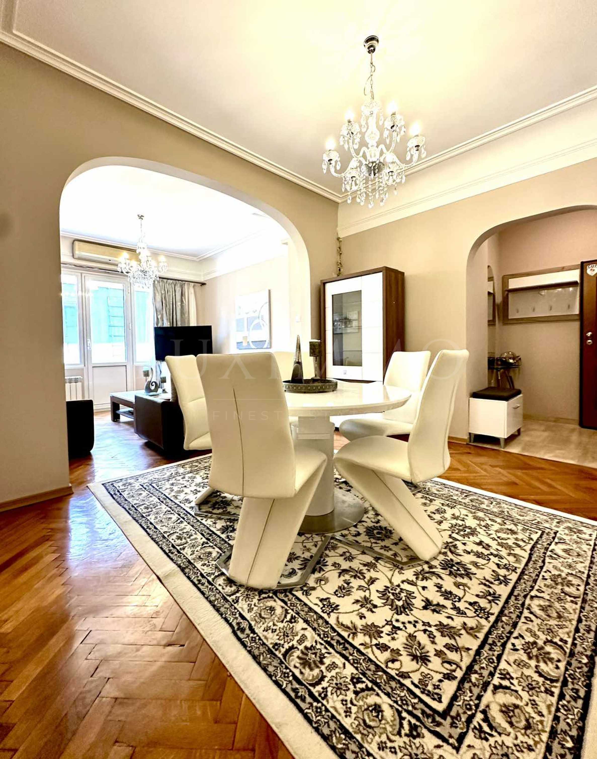 We present to your attention a spacious two-bedroom apartment for rent, located on Graf Ignatiev Street, 50 meters from the monument of Patriarch Evtimiy/Popa, 200 meters from Tsar Ivan Shishman Street and the church of Saints Seven Hundred and Seven in the center of Sofia.