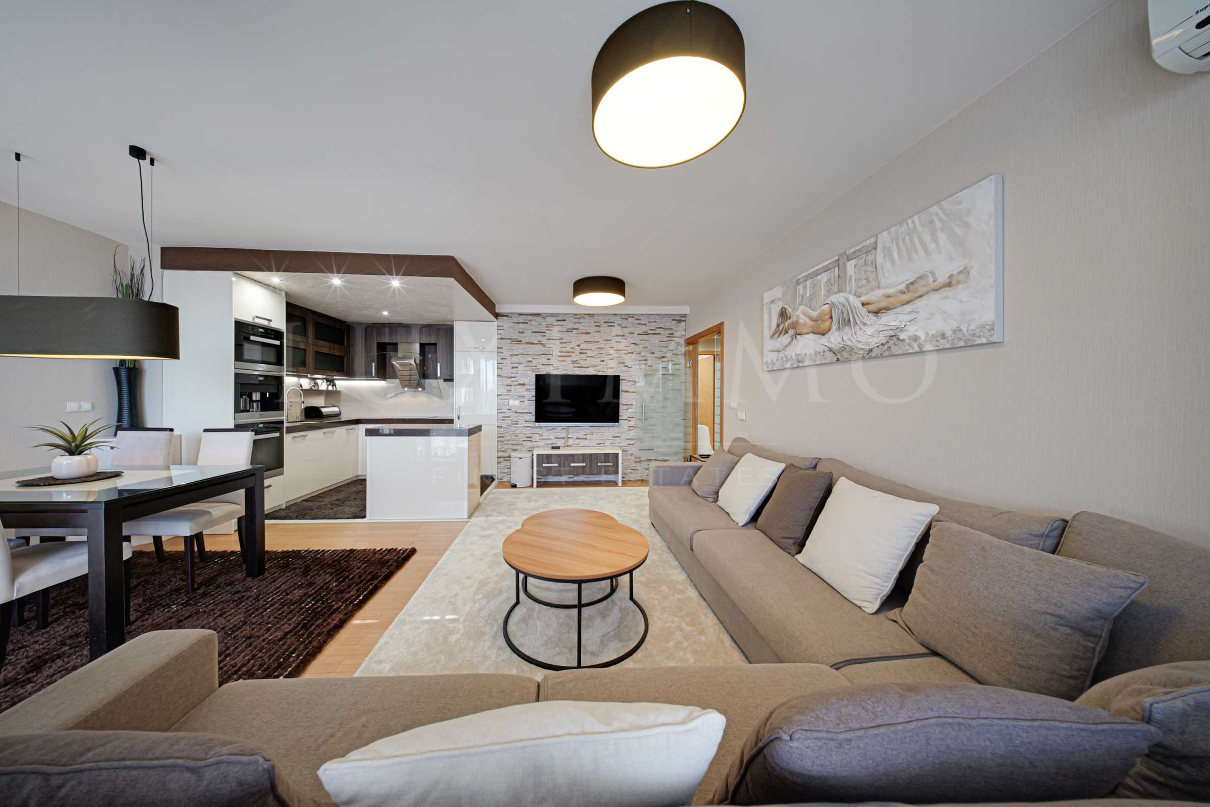 Distribution: individual entrance hall in the common areas of the building, where the elevator stops, entrance hall in the apartment, living room with kitchen, two bedrooms, two bathrooms, terrace with panoramic views of Vitosha Mountain.