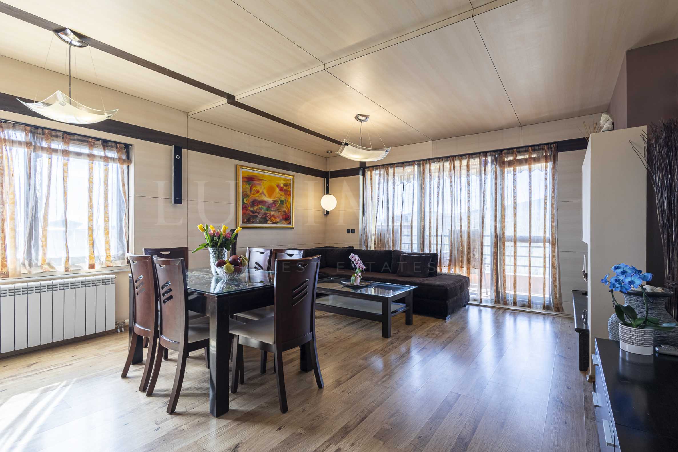 Located on the 6th floor of a total of 7, the apartment guarantees an abundance of natural light and a wonderful panoramic view of Vitosha Mountain. The property is offered with furniture and quality appliances, with everything you need for living, with a wood-burning fireplace for cozy evenings.