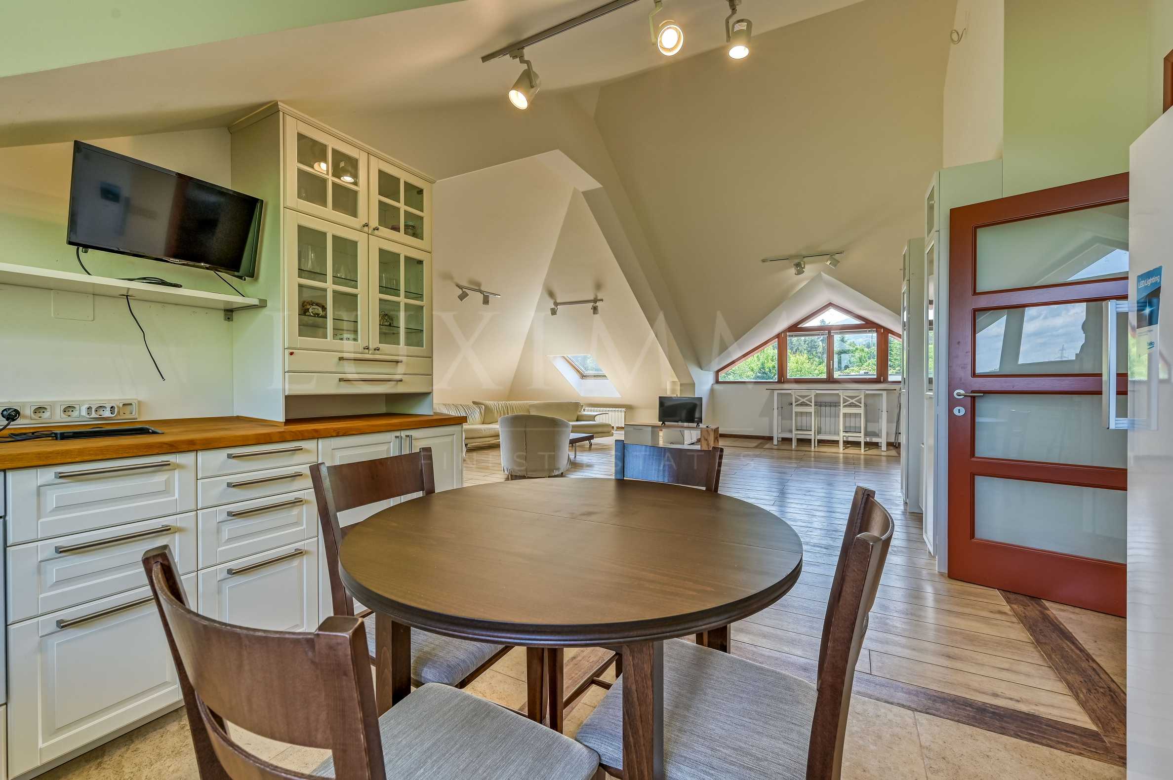 We present a super spacious, fully furnished two-bedroom apartment for rent - attic floor of a house, located in the prestigious gated complex in the capital. The property is suitable for serious tenants who are looking for security and comfort, in a green environment with excellent access to the city.