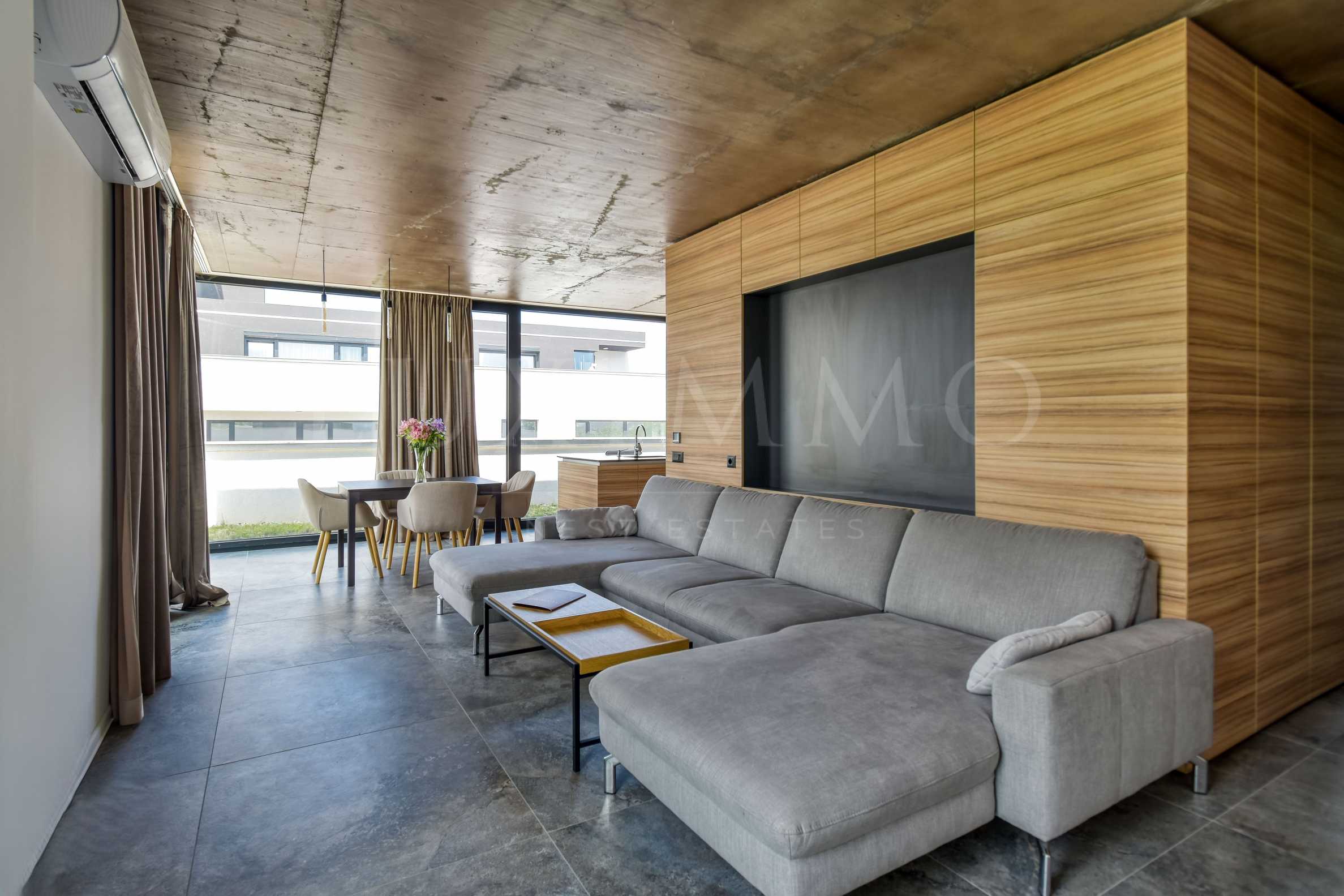 The layout is functional and well thought out: entrance hall, spacious living area with separate kitchenette and dining area, two comfortable bedrooms, two bathrooms with toilet, utility room and a terrace with a pleasant view of the green and quiet surroundings. The interior is stylishly finished, combining elegance, coziness and practicality.