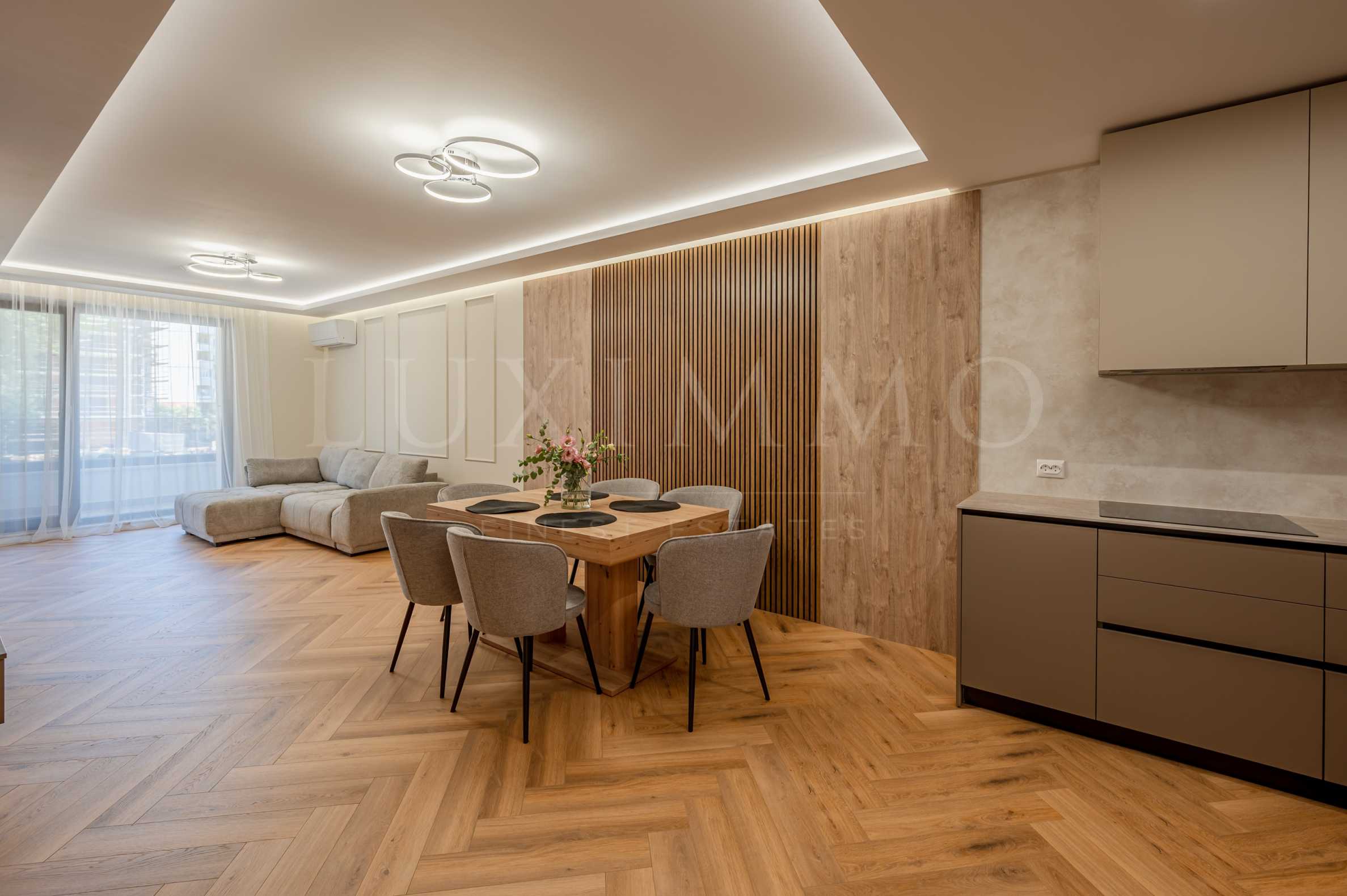 Spacious living room with dining area - a bright and cozy room, suitable for family dinners and relaxation;