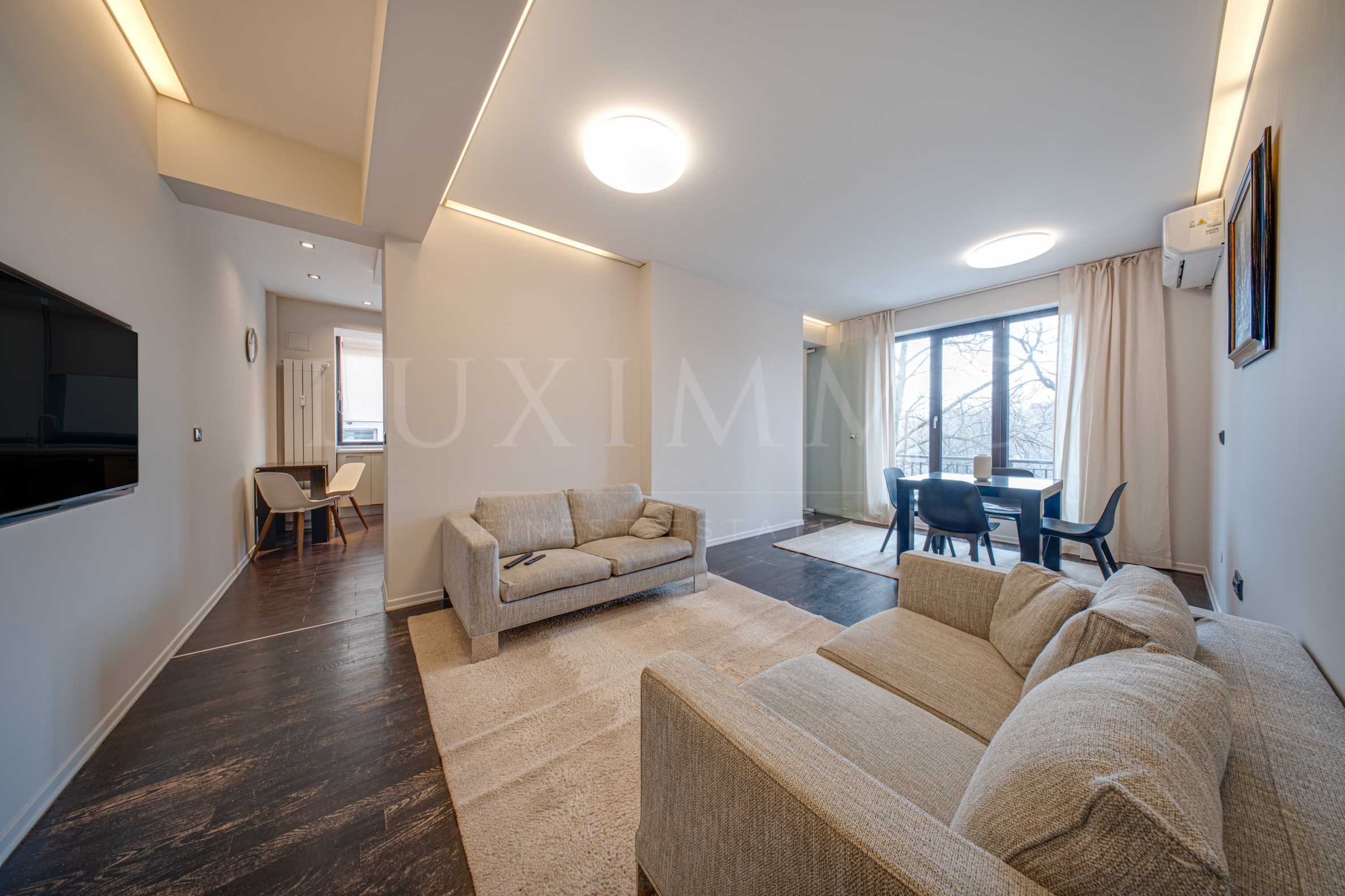 A three-room apartment with modern furnitures on F. Nansen Street in a renovated building from 1955. Located in the most central parts of the capital, the apartment has a location that has everything you need for a comfortable everyday life. Large and communicative boulevards, such as Vasil Levski Blvd., Patriarh Evtimiy Blvd. serve the area and provide easy access to many important points in the city, and the "NDK" metro station is also nearby.