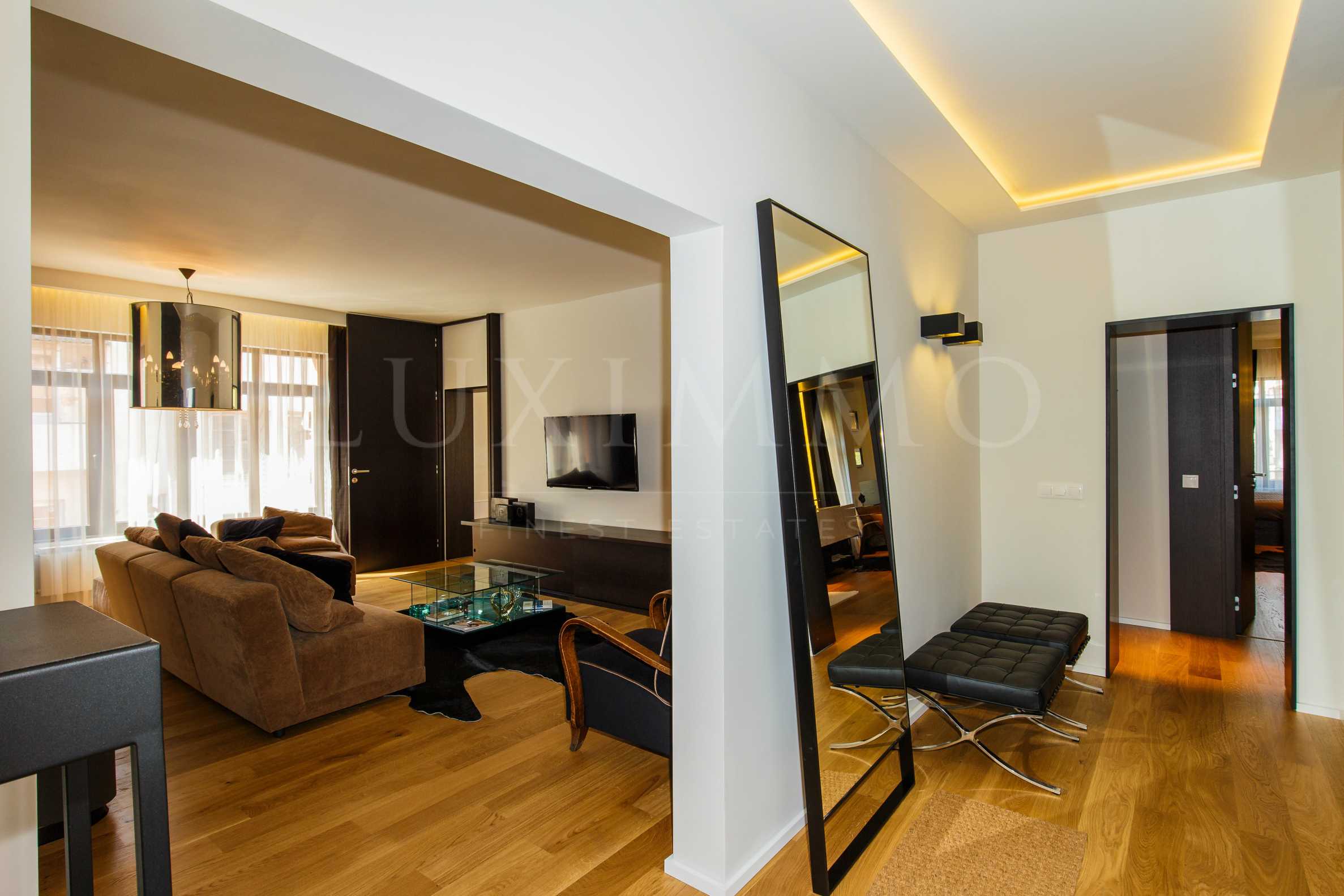 The apartment occupies the third floor of a four-storey building. The total area is 250 sq.m. and the exhibition is to the south / east / west, overlooking the patio. The property stands out with high quality finishing and luxurious design that combines stylish references and traditional design. It comes with: