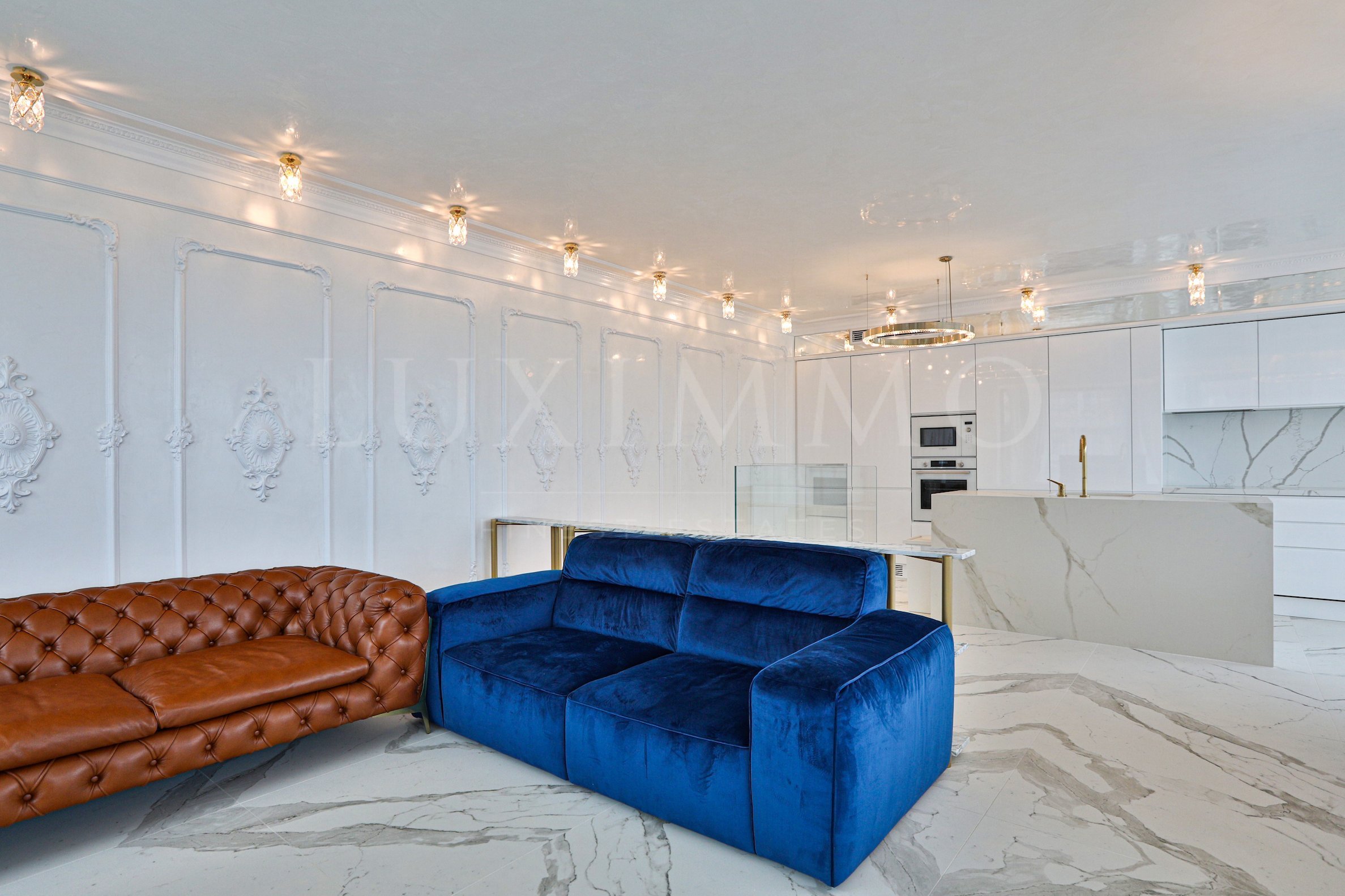 • walls: Venetian plaster with French elements;
