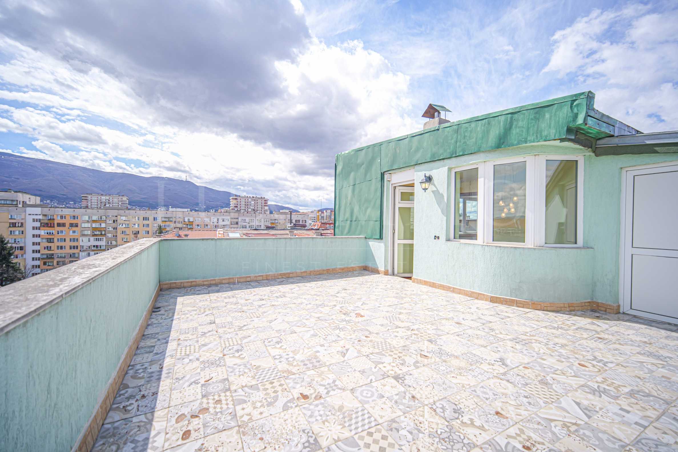 Situated on the top two floors of an 8-storey building from 2007 with an elevator and offering a spacious terrace and wonderful panoramic views of the city and Vitosha Mountain. It is oriented to the south, with 154 sq m of living space and 40 sq m of terraces.