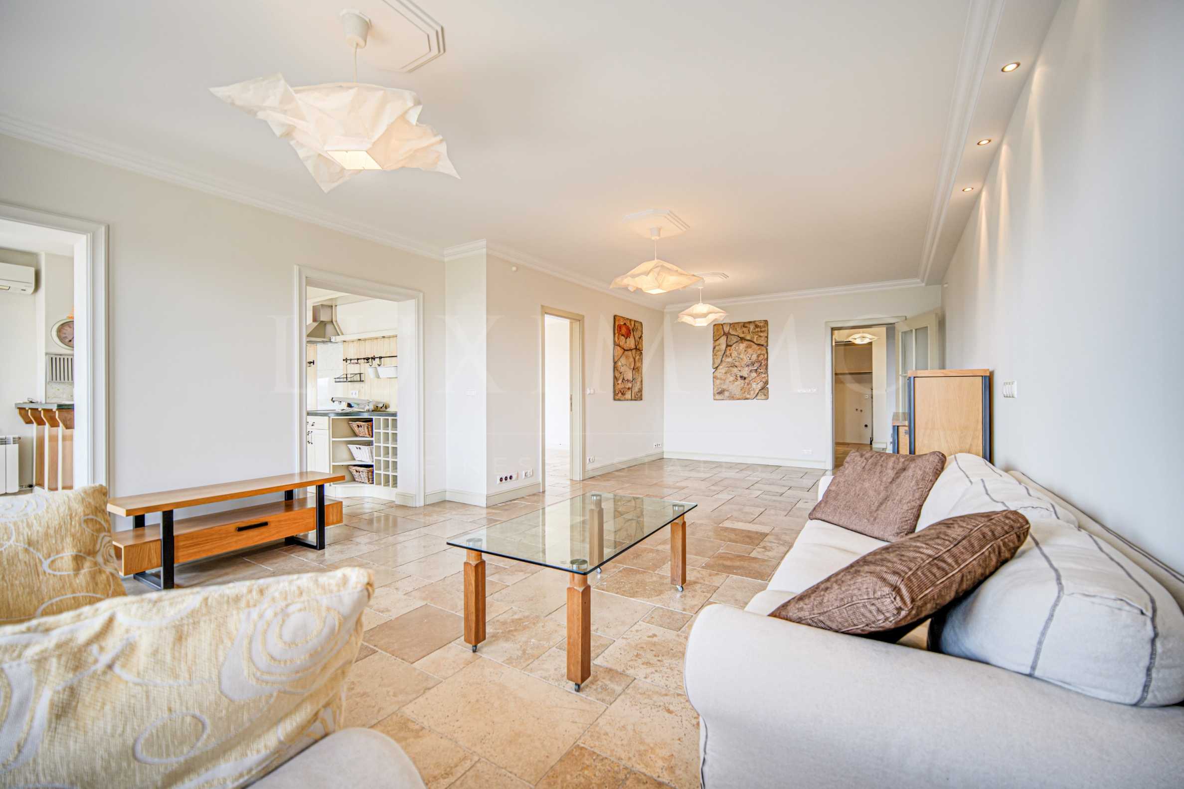 We present a three-bedroom apartment with an area of 200 sq.m in a modern building, in the "Izgrev" quarter of the city of Sofia. The building is new with excellently maintained common areas. It is located on "Elemag" street, an extremely convenient and desirable location in the immediate vicinity of Borisova gradina and within walking distance of the "Jolio Curie" metro stop. The area is quiet and peaceful and, apart from its proximity to a park and public transport, it offers numerous shops, supermarkets, restaurants and bars.