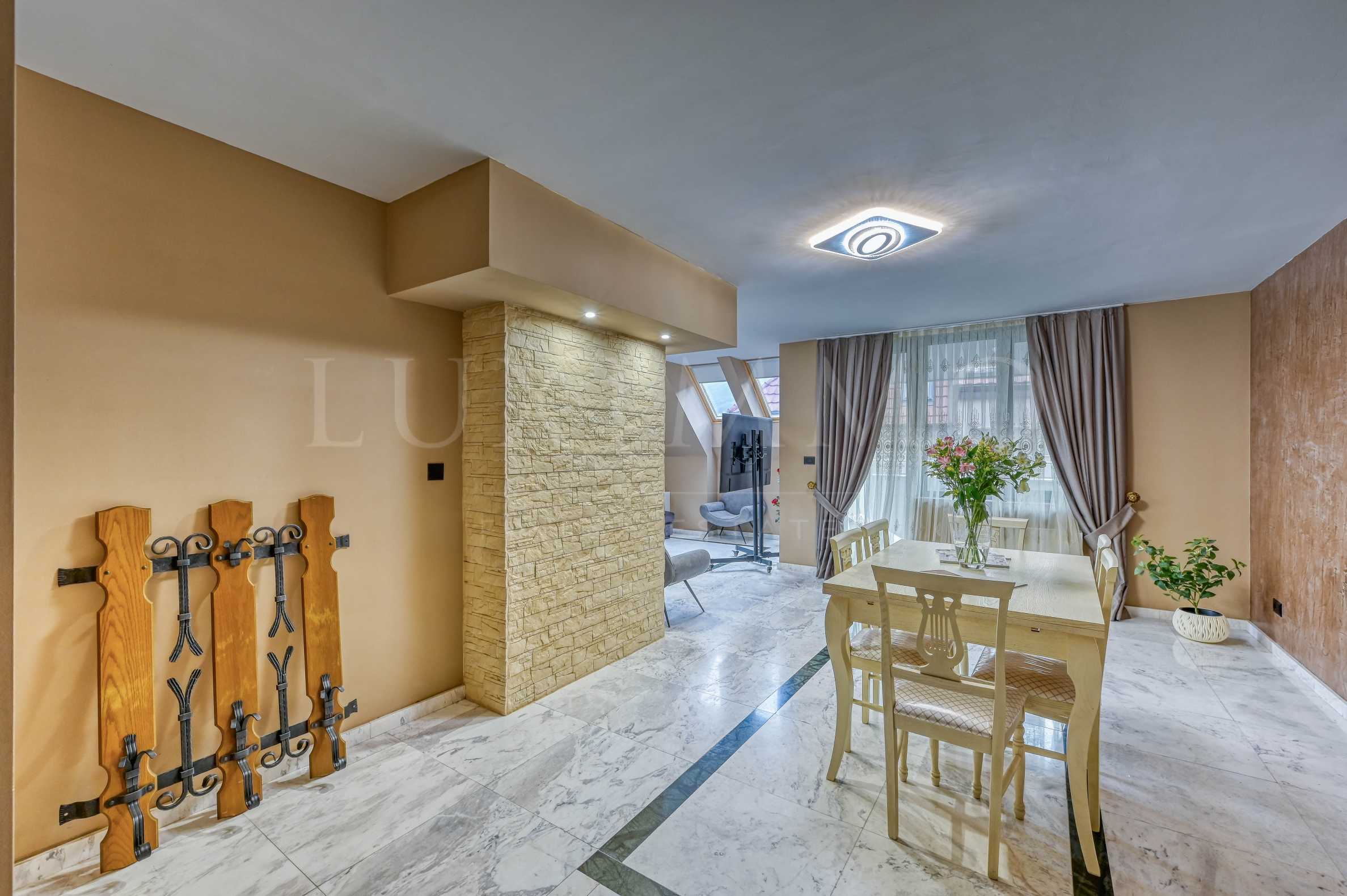 This unique apartment offers large and bright spaces, high-class finishing materials and exceptional panoramic views of Sofia and Vitosha Mountain.