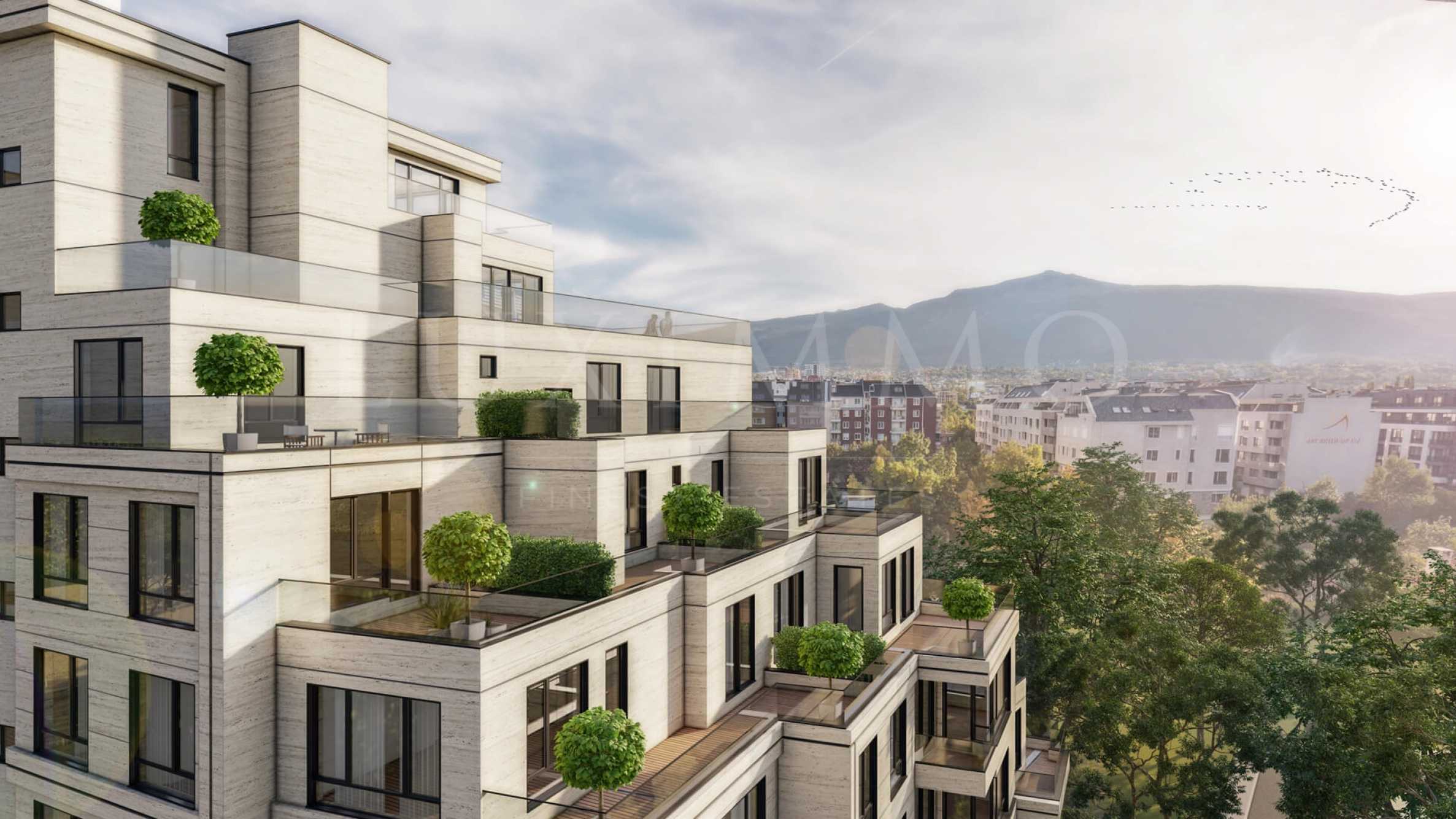 The apartment has high ceilings and plenty of natural light. The interior space is designed with comfort and practicality in mind - the living room offers space and freedom for interior solutions. The terrace offers views of the city and Vitosha Mountain.