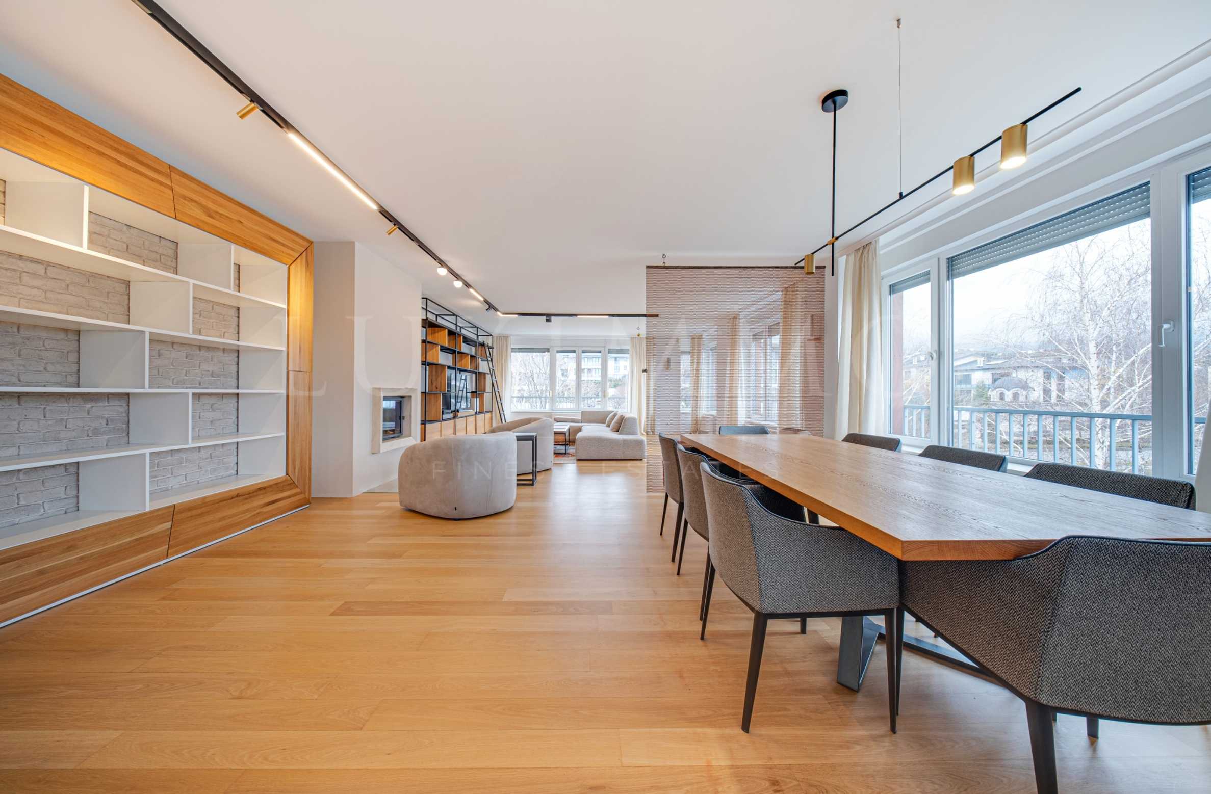 The apartment is being rented fully furnished and after a major renovation, with the finishing work and furnitures being mostly made of natural materials, and much of the furniture is unique, custom-made by the owners. The kitchen is perfectly equipped to meet the requirements of the most ardent culinary experts - a large refrigerator with a freezer section, a large wine cabinet, all basic kitchen appliances, a kitchen pantry and a large kitchen island with a removable top so that the family can share more time together.