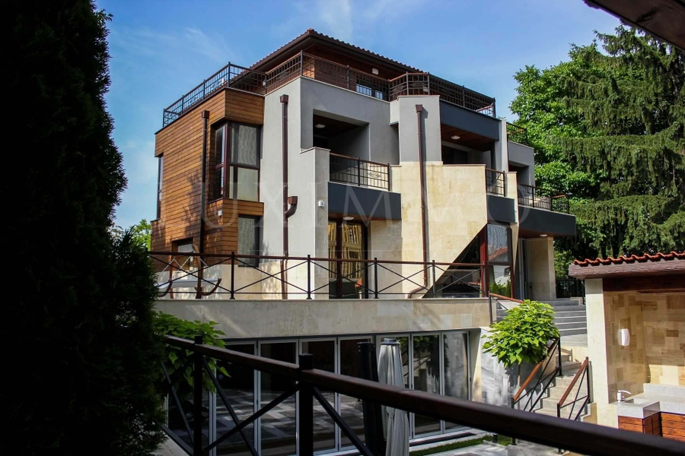The property is serviced by modern systems and capacities and has: indoor swimming pool, English courtyard, spacious double garage, summer gazebo, BBQ, detached house for security, solid 2.5 meter fence, round useable terraces, separate sauna rooms , for fitness and machines, autonomous power supply / generator system, video surveillance and perimeter security guards, irrigation automation, own water source, extended heating pellet installation, autonomous car portal access and more. All support systems are in a period of warranty service and operating contracts for their operation.
