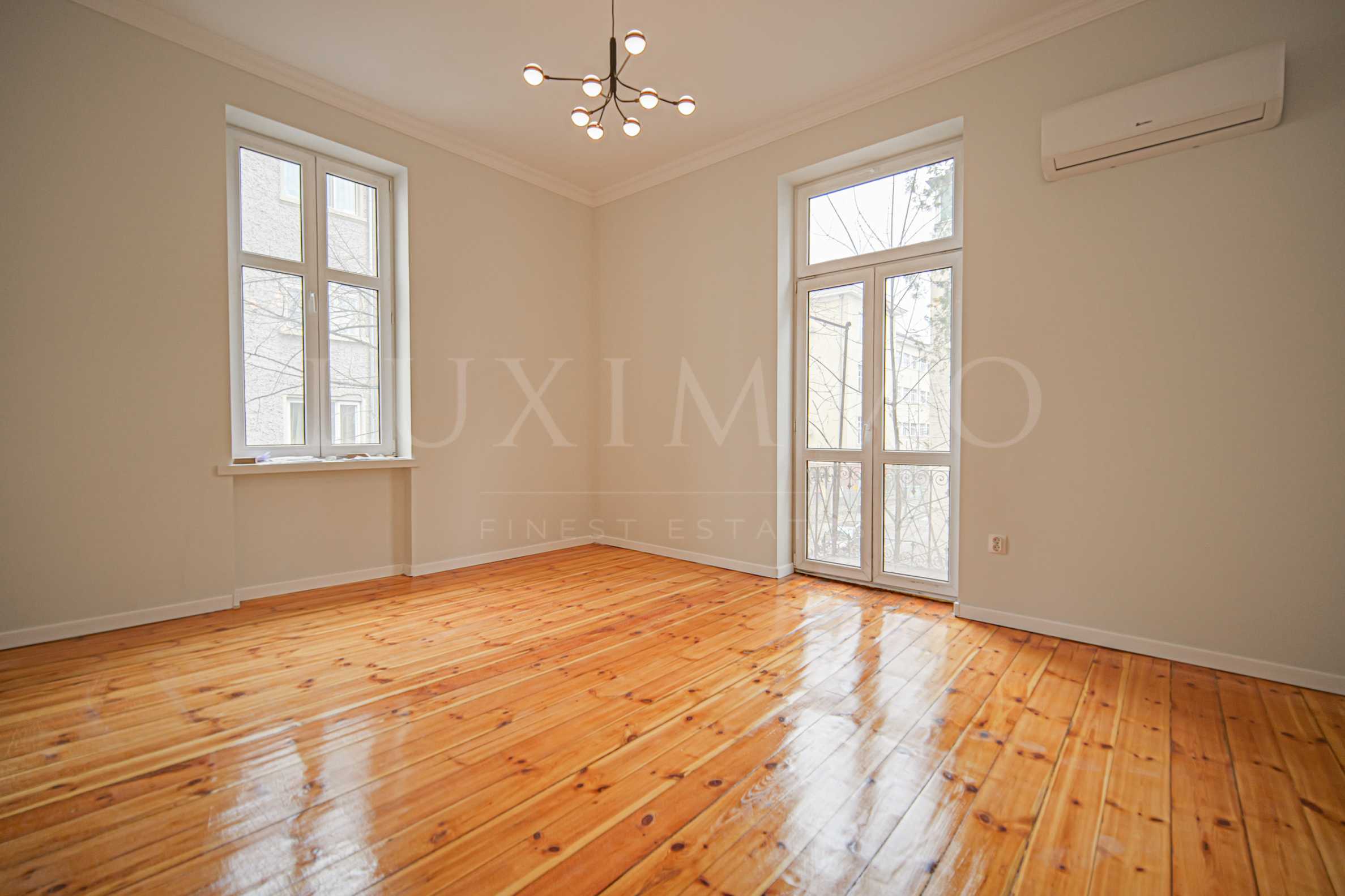 The apartment is after a major renovation with replaced plumbing and electrical installations, wired for the Internet, the height of the ceilings is 3.20, which ensures light and spaciousness of the premises. The floors are granite tiles and the floor, which has been cycled and varnished, the walls are after paint with preserved friezes on the ceilings, the doors are the original ones after restoration.