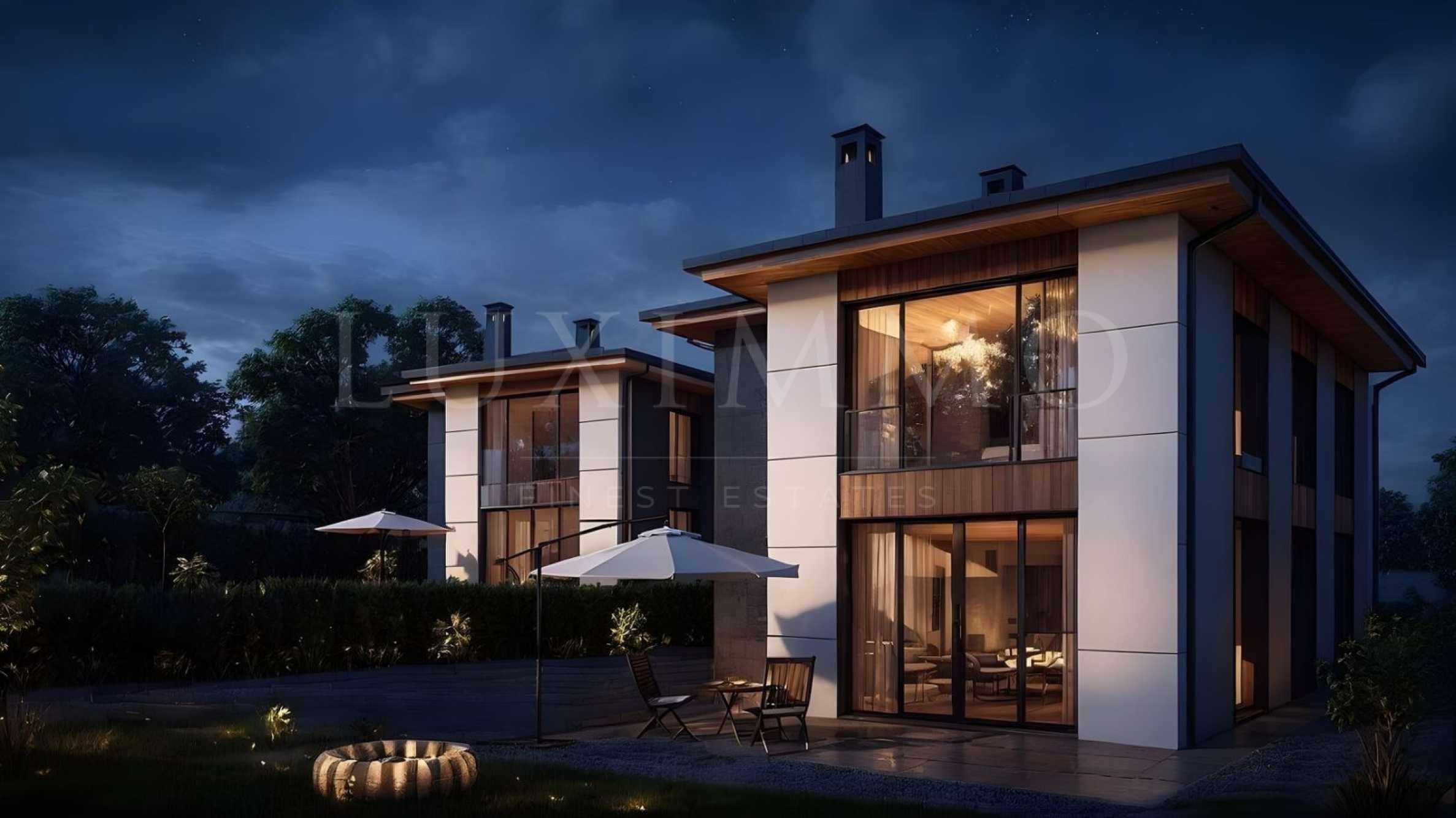 We offer for sale two identical detached houses, each with a total built-up area (GFA) of 313.5 sq m, located in a green and quiet location at the foot of Vitosha Mountain. Each house includes three levels: one underground and two above-ground, and is designed with exceptional functionality, modern vision and architecture.