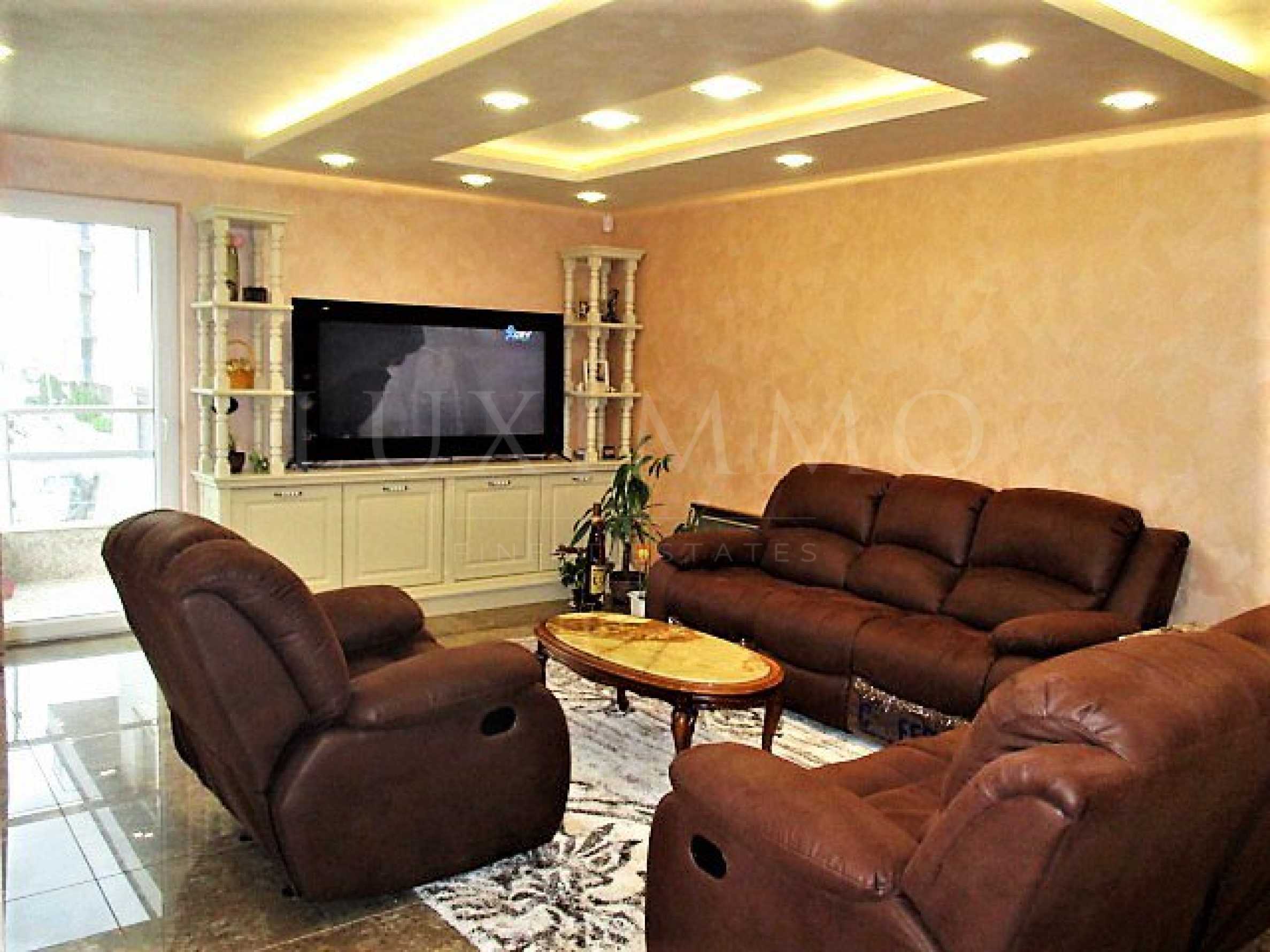 We offer you this large apartment with a total area of 160 m2. The property is supplied with electric convectors, heat pump and underfloor heating. granite tiled flooring, armored front door, interior doors, painted walls, parquet flooring, solid walls and suspended ceiling are available in the property. The property is connected to electricity, communal water supply and communal sewage system. Some of the other available facilities that you will certainly consider important include: a balcony, a bathroom with toilet, a garage, a toilet, a lift, a cable tv, internet and a wi-fi. From the inside you will be able to enjoy wonderful mountain views and town views.