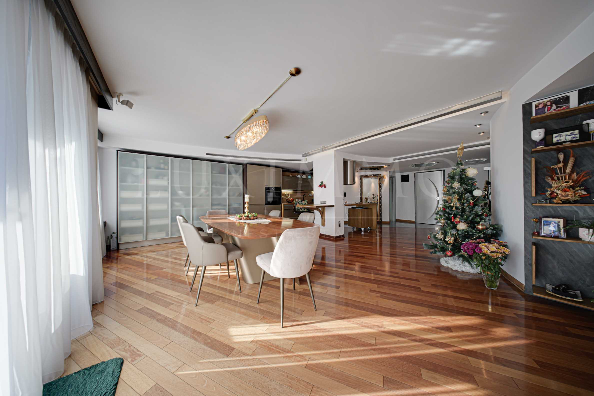 With a net built-up area of 250 sq m, the apartment is distinguished by extremely spacious rooms and three exposures - south, east and northeast. The panoramic windows reveal impressive views of Vitosha Mountain, the Stara Planina Mountain and the lights of Sofia.