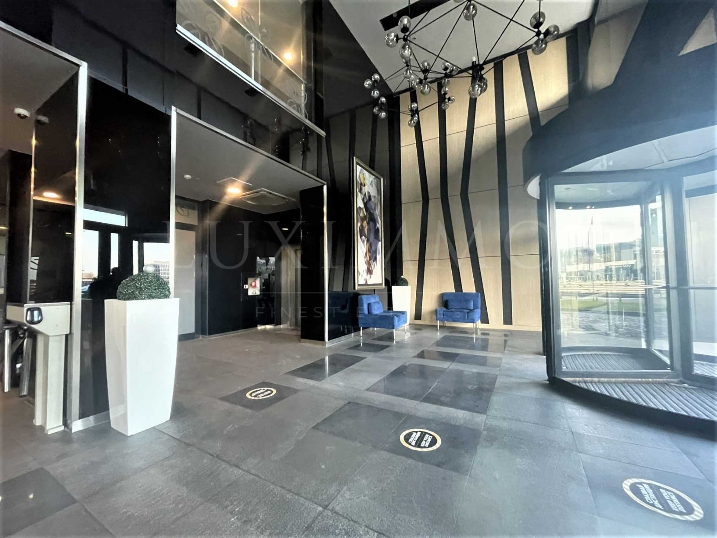 The modern business complex rises to a height of 65 meters, spread over 16 floors, with a remarkable architectural vision with a glass facade and office heights of 2.80 m, which contribute to an abundance of natural light. It provides its tenants with amenities such as three elevators, a lobby with a reception desk with 24-hour security and video surveillance, two emergency staircases and luxurious common areas.