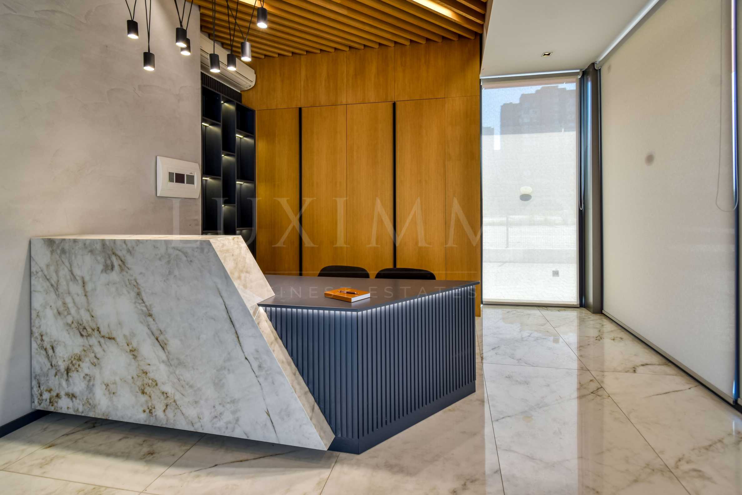 We present for rent a spacious office with an area of 324 sq m, located in a modern office building with a prestigious vision and easy access, situated on the main boulevard in the Druzhba 1 residential area. The building has three separate floors for rent, each with independent and controlled access from the elevator via a chip system.