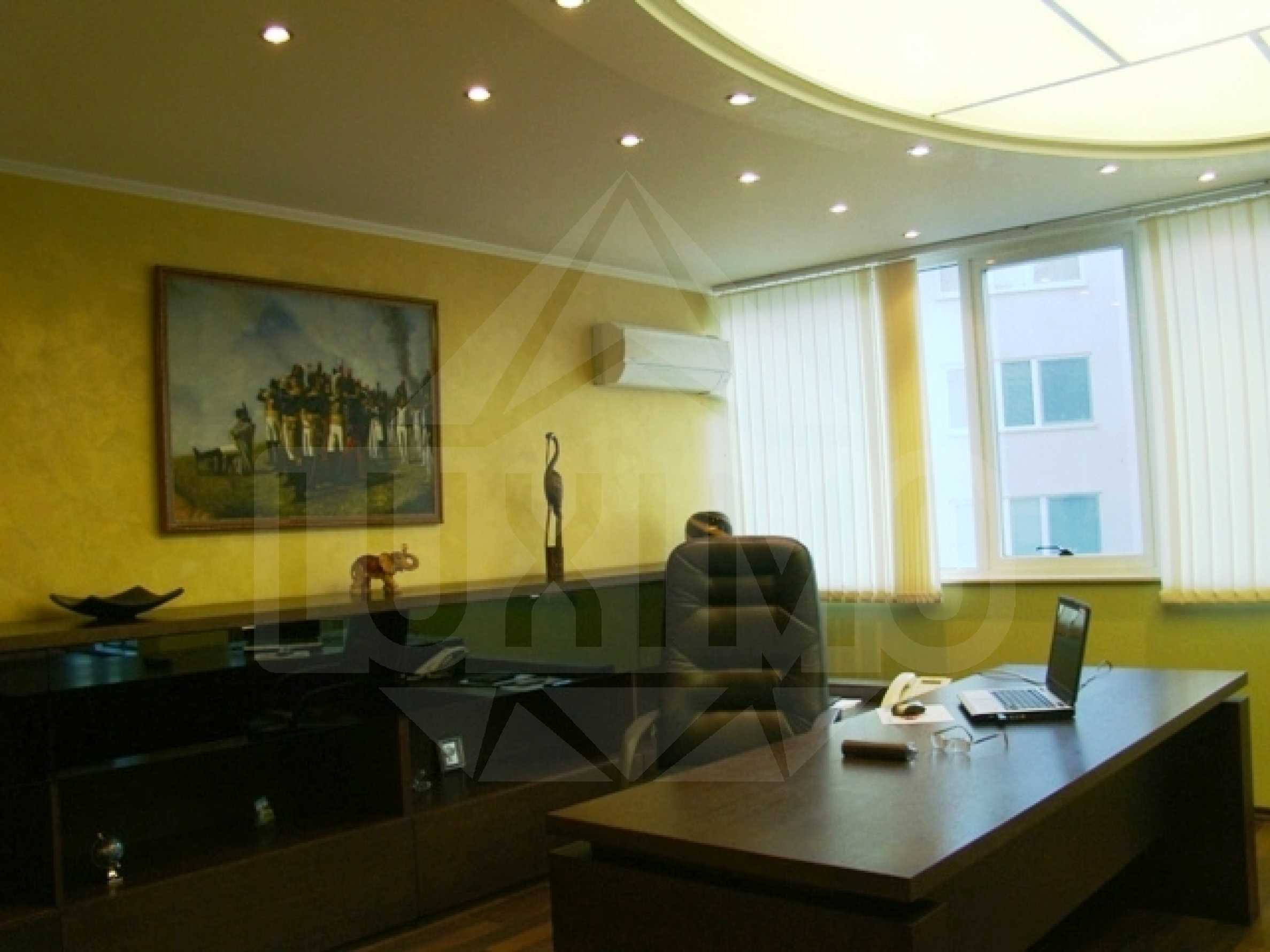 Luxurious office in a modern office building, located in the "Hippodrome" district, on the street "Ami Bue”, next to “Tzar Boris III” Blvd. The neighborhood also borders “Bulgaria” Blvd. and “Academician Ivan Geshov” Blvd. The area is located near the center, the access is quick and convenient. The office is set in an office building with permission for usage since year 2005, luxurious common parts, 24-hour security service and video surveillance, plus outdoor parking. The heating is central and aluminum radiators are placed in all rooms. For greater convenience, the office is equipped with air conditioners "Sharp". The price includes three parking lots.
