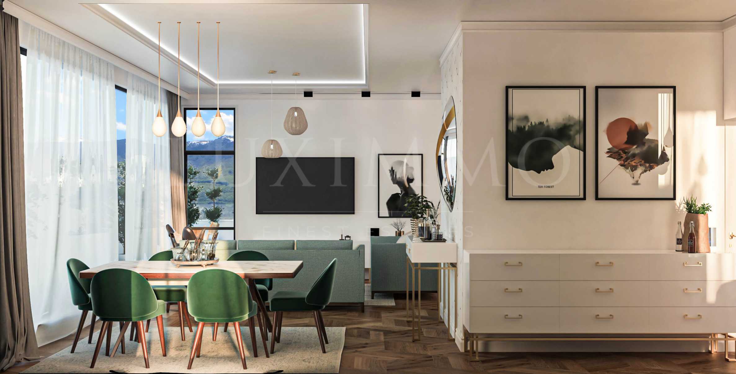 The specific offer is for a detached penthouse on the top floor, entrance hall, 3 bedrooms, spacious living room, dining room, kitchen, 2 bathrooms, spacious south-facing terrace with exceptional views, access to three separate spacious landscaped roof terraces overlooking the city and the mountains, basement.