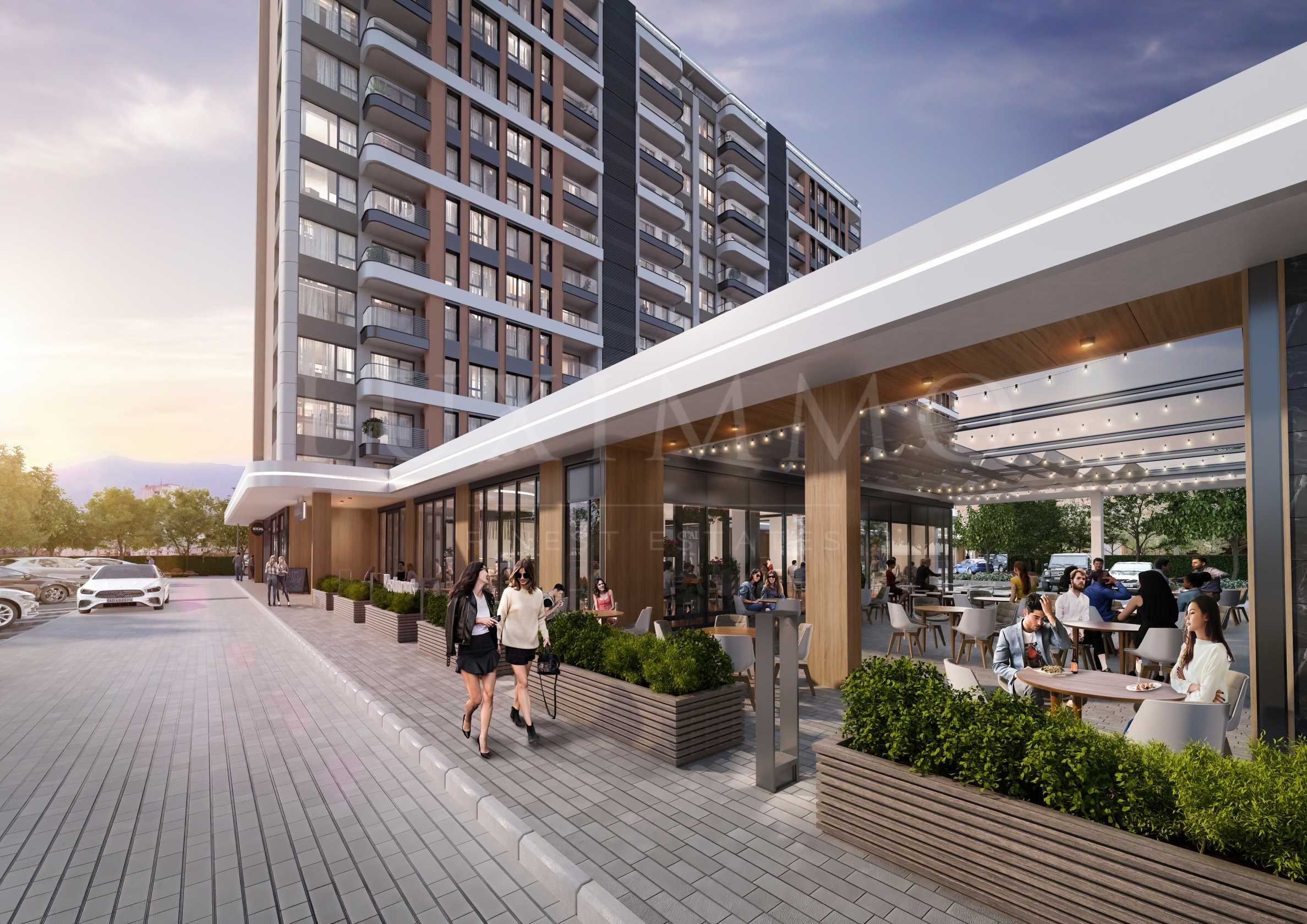 The project includes the construction of a gated complex with an internal park environment, wide alleys with recreation areas and playgrounds, 9 shops, a garden restaurant, a playground, apartments with their own landscaped yard, penthouses with spacious terraces and a wonderful view, 24/7 management and maintenance by a company controlled by the investor.