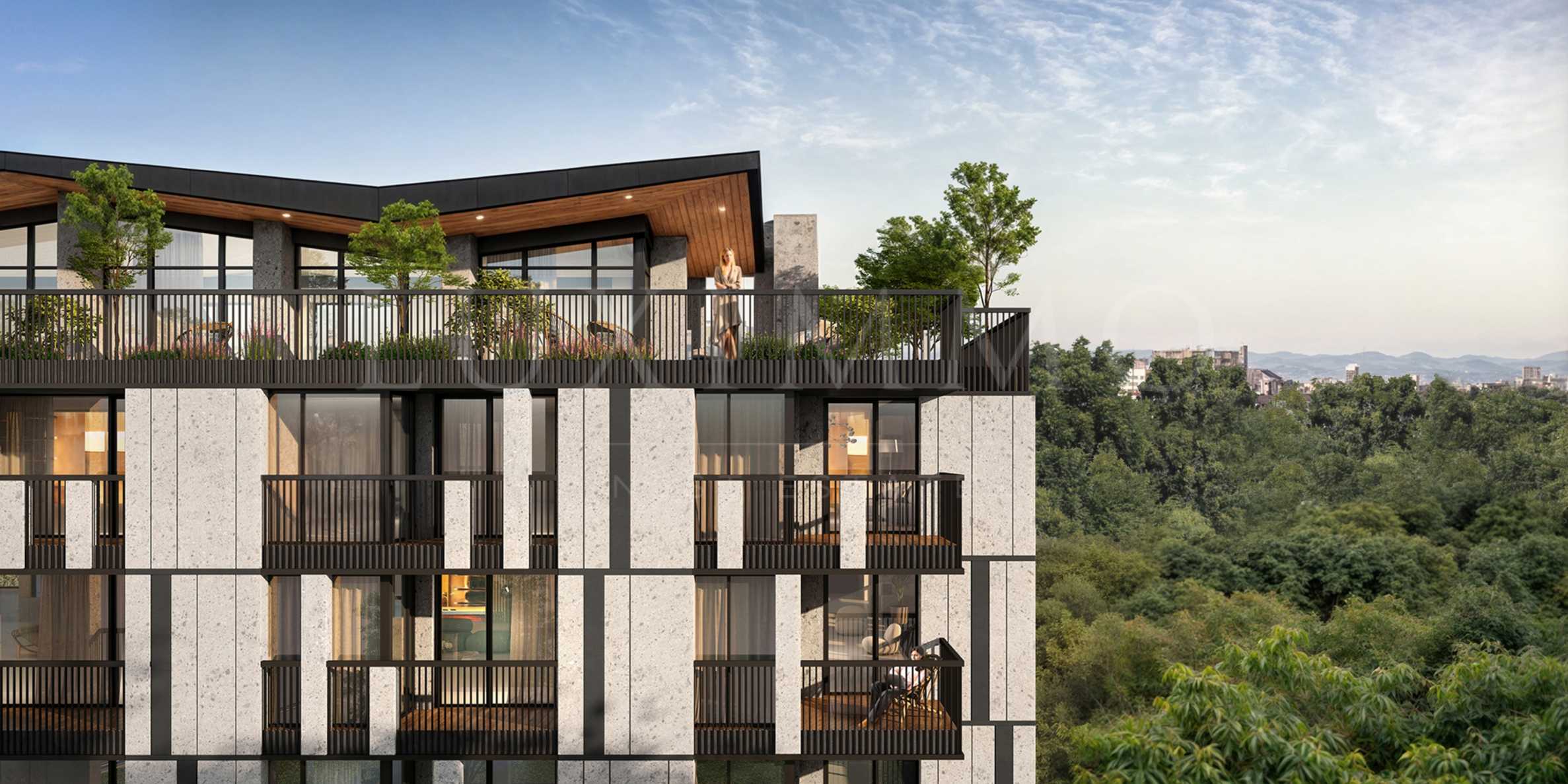 The building is spread over five residential floors and impresses with a modern architectural line and a distinctive presence that clearly stands out from the environment. The modern exterior and wide panoramic windows provide abundant natural light in each home and reveal the full beauty of the surrounding natural landscape.