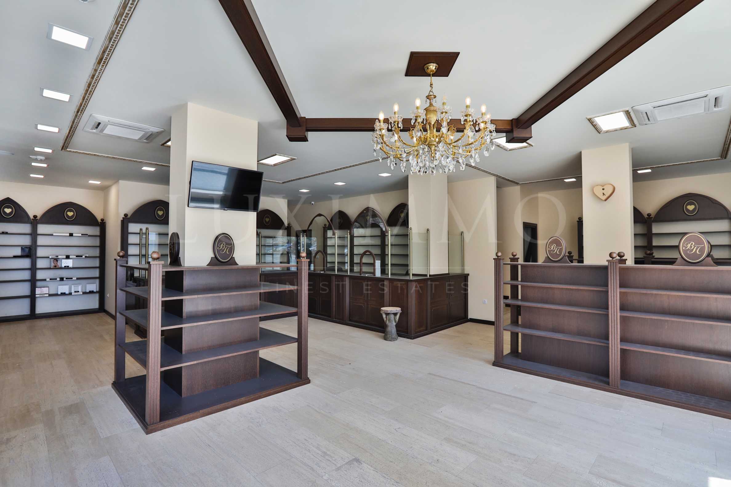 Luxurious room with high ceilings and large windows to two streets. The premise has the status of a pharmacy, but it is also suitable for a shop, a showroom, an office, a clinic, a cosmetic studio and others. It is situated in a building built in 2016. It is situated in a communicative area with a large human flow near Business Park Sofia, Alexander Malinov Blvd and Ring Road.