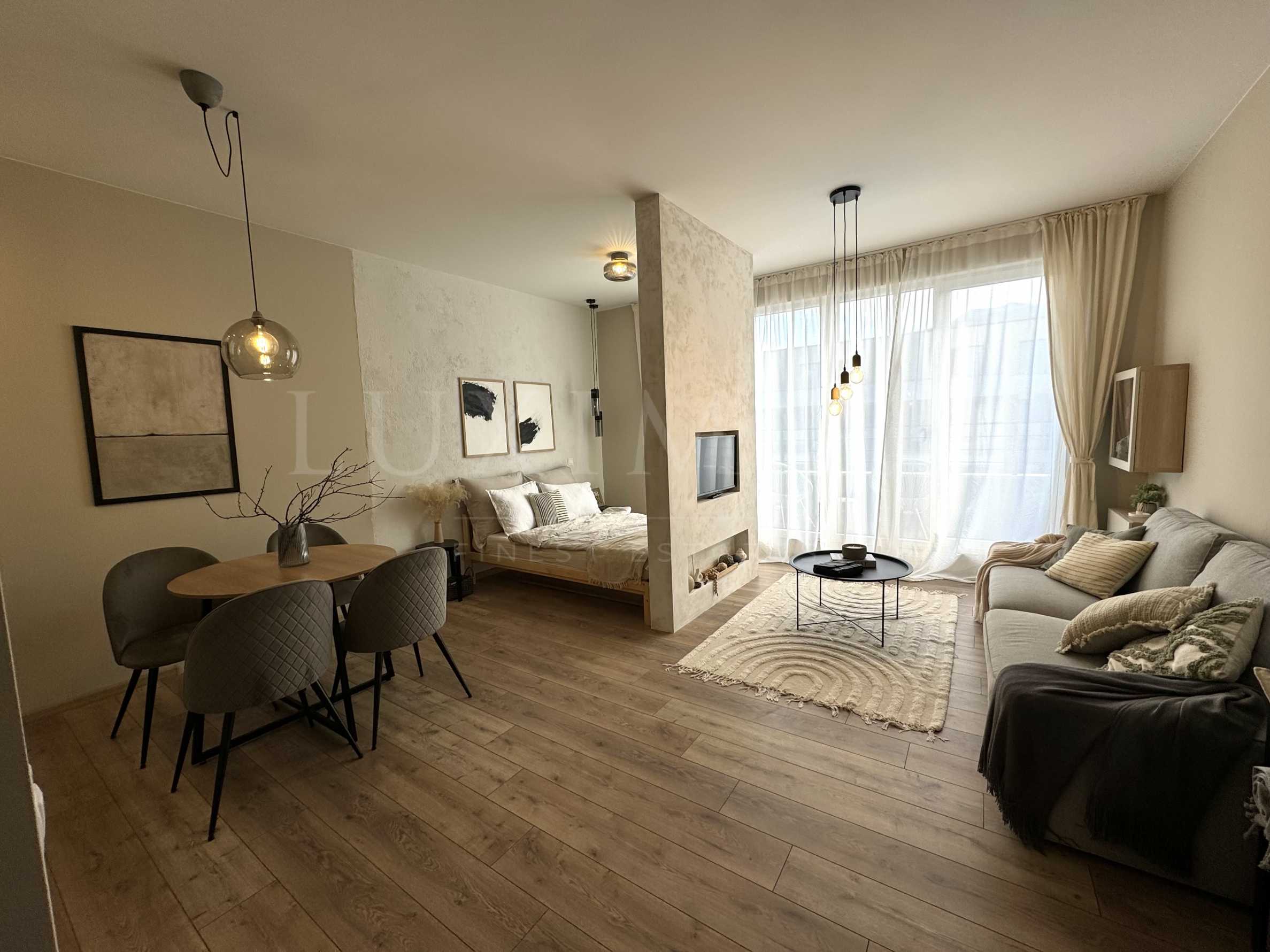 We present a beautiful one-room apartment with an attractive, modern design, conveniently located in Malinova Dolina district in Sofia.