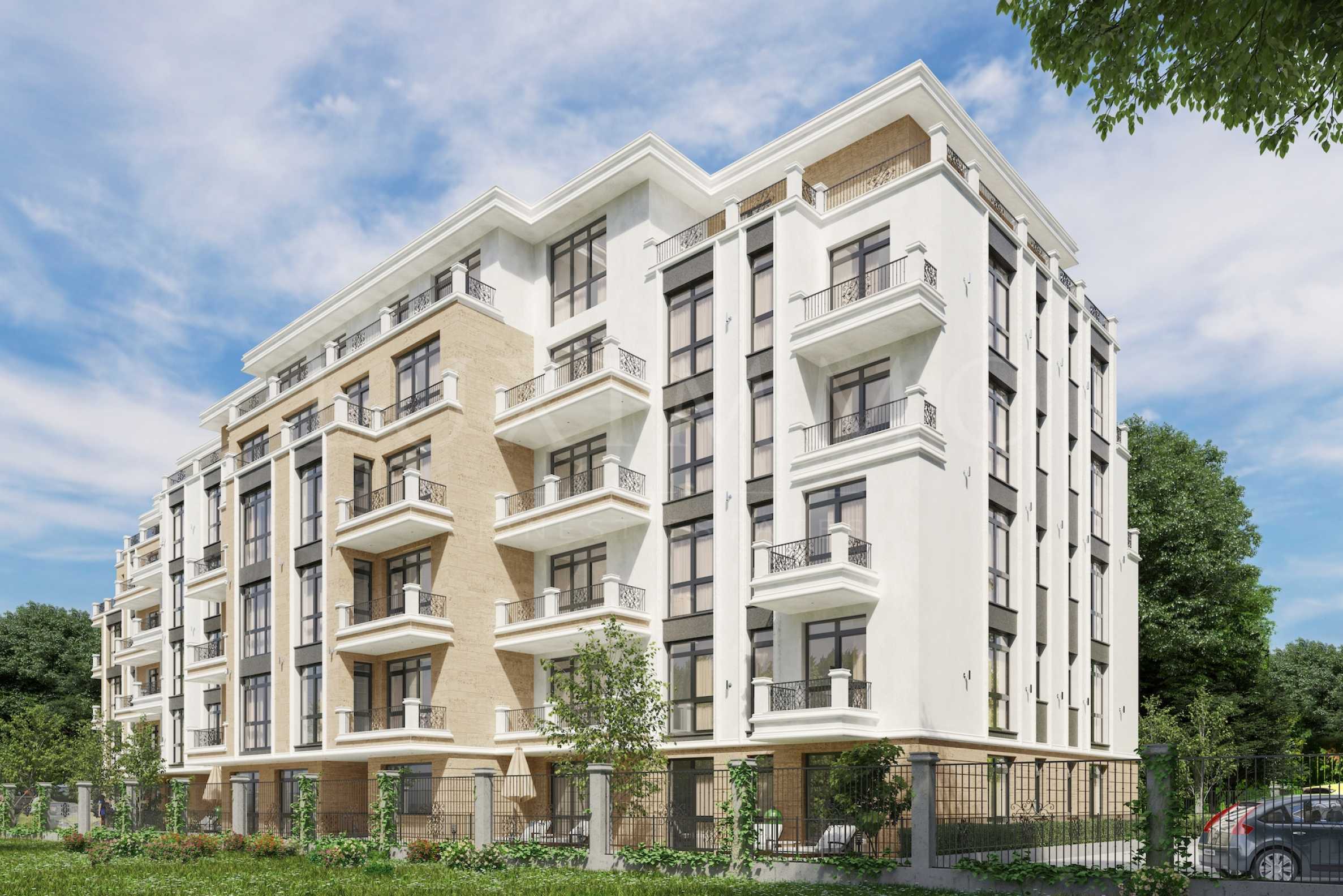 59 apartments with one, two and three bedrooms, commercial premises, children's playground, garages and parking spaces are designed for the peaceful parking of all residents and their guests. The apartments are extremely functional, with a large number of windows with height of 2.50 m. to provide more light, comfort and beautiful views of the city, the mountains and the park. The high level of energy efficiency is one of the priorities in the design of the building, using 25 cm of Vinenberger brick blocks, heat insulating panels on the outside walls and high-quality joinery with PVC profile and triple low-emission glass package. The facade of the building will be filled with stone venetian stone and gray granite and white silicone plaster with details from the architectural project.