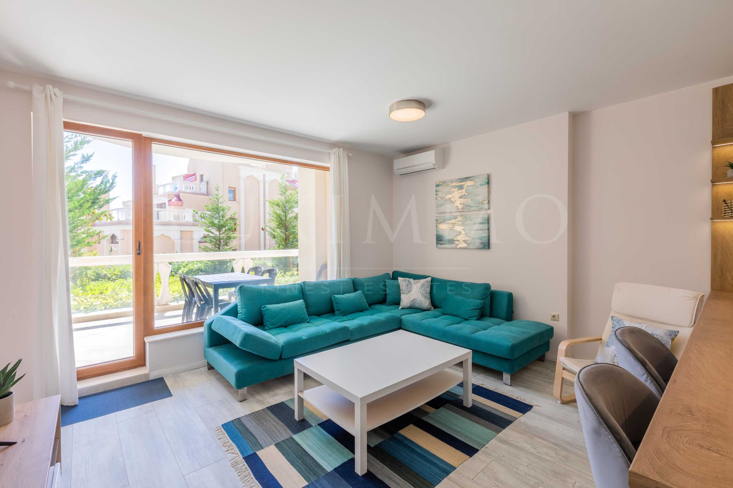 We present a first-rate furnished and ready-to-move-in, two-bedroom apartment for sale, in an elite gated complex, on the seafront, on Kabakum beach itself, only 15 km from the center of Varna.