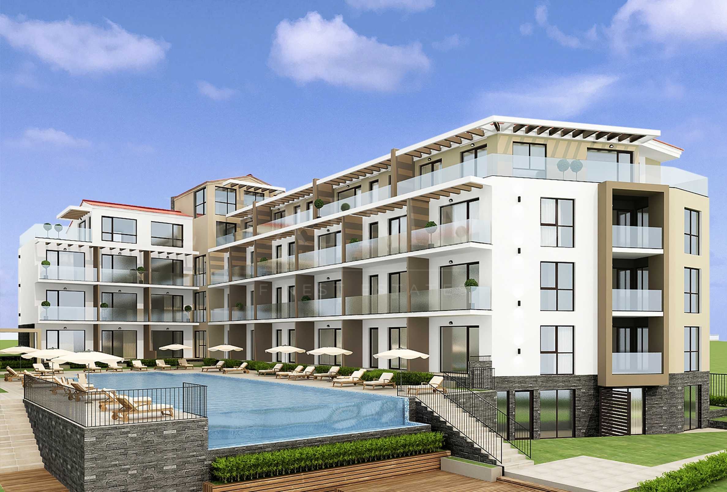 The project consists of 2 boutique buildings, situated on the beach, and the beach is reached by a picturesque path - the rocky shore among the pine forest. Near it are five-star hotels that have all the necessary infrastructure for recreation (shops, restaurants, fitness centers, SPA salons), as well as fully equipped spacious beaches, access to which, according to Bulgarian law, is open to all comers.