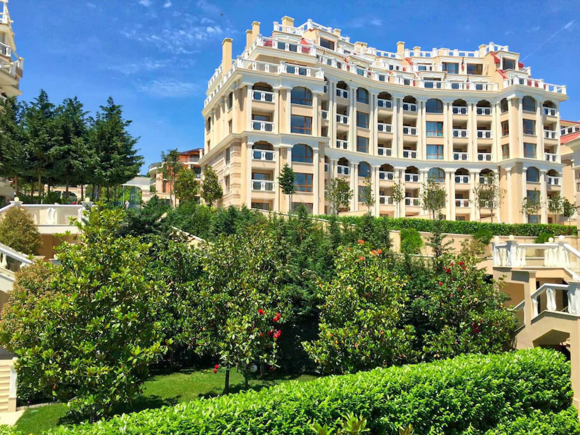 We offer you this 1-bedroom apartment with a total area of 77 m2 which is situated in a gated development. It was constructed in 2017 and has luxury common parts. The property has air-conditioners. granite tiled flooring, laminate flooring, latex painted walls, tiled flooring and upvc window frames are available in the property. The property is connected to electricity, communal water supply and communal sewage system. Some of the other available facilities that you will certainly consider important include: a balcony, a bathroom with toilet, a parking space, a storage room, a lift, a porter, a swimming pool, a cable tv and internet. From the inside you will be able to enjoy wonderful sea views.