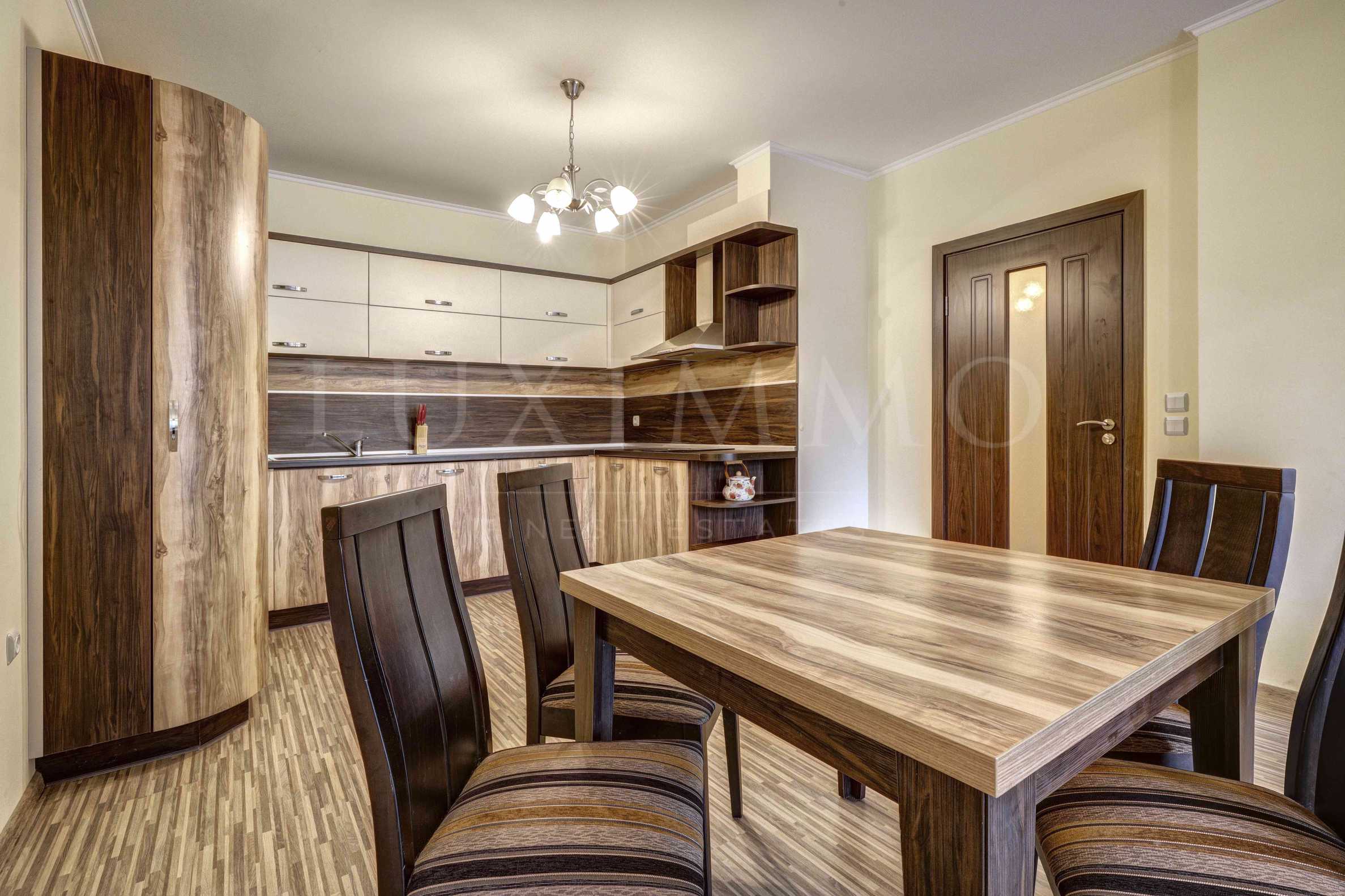 Stylishly furnished, the apartment is located on the first floor, with a southeast exposure and has an area of 104 m2. It has a bright and spacious living room with a kitchen area, and from the living room you have access to a large veranda surrounded by hedges and a decorative wooden fence, where you can enjoy your morning coffee or a family dinner. The bedroom has the same south-east exposure and offers access to the veranda. The apartment offers an equipped bathroom with a large bathtub for better comfort, as well as a closet for additional luggage.