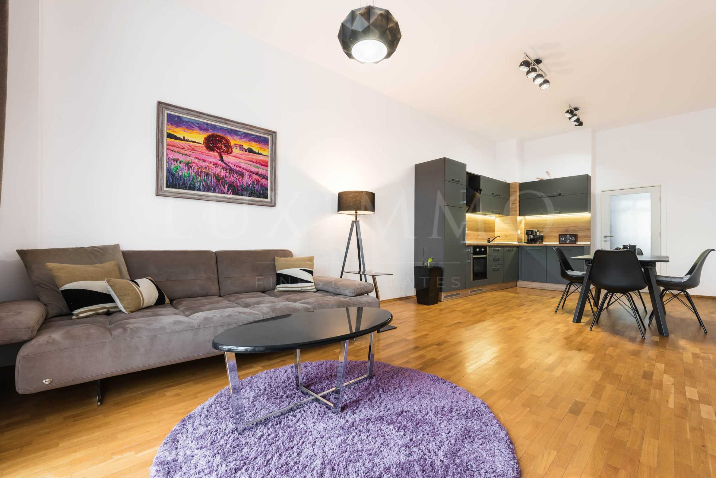 The apartment is fully furnished and equipped with attention to detail - natural parquet, modern furniture and high-end appliances, creating a feeling of a cozy and complete home.