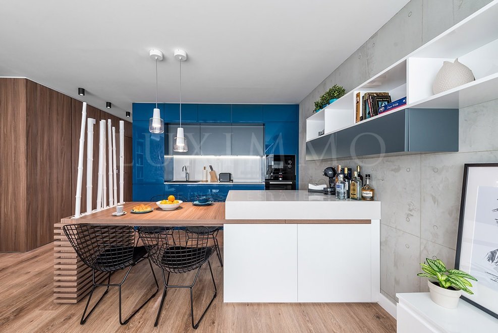 The building is four-storey and has its own yard, swimming pool, relaxation and relaxation spots. The modern living conditions in the complex are complemented by a gym and a sauna. The overall concept of the project is to create an environment with a high standard of living for prospective owners.